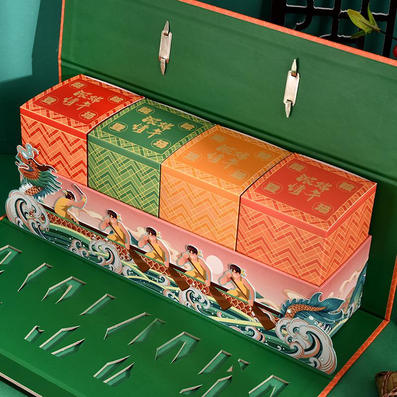 Caja de regalo con forma de bolsita recortada estilo Zhou del Año del Dragón, para negocios, hoteles, festivales del Bote del Dragón, embalaje de regalo, caja vacía