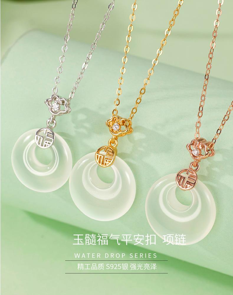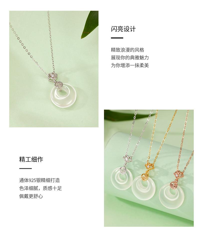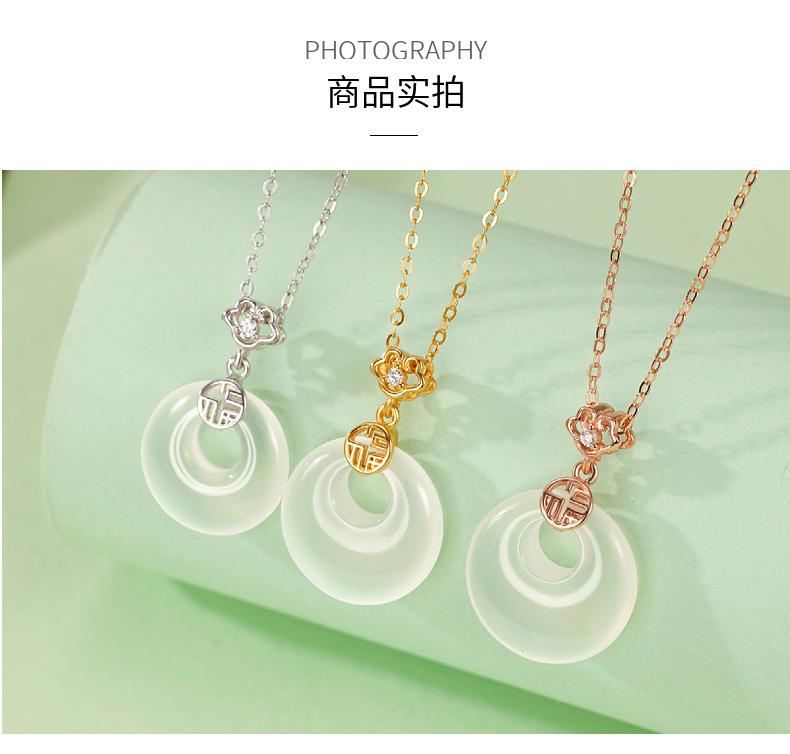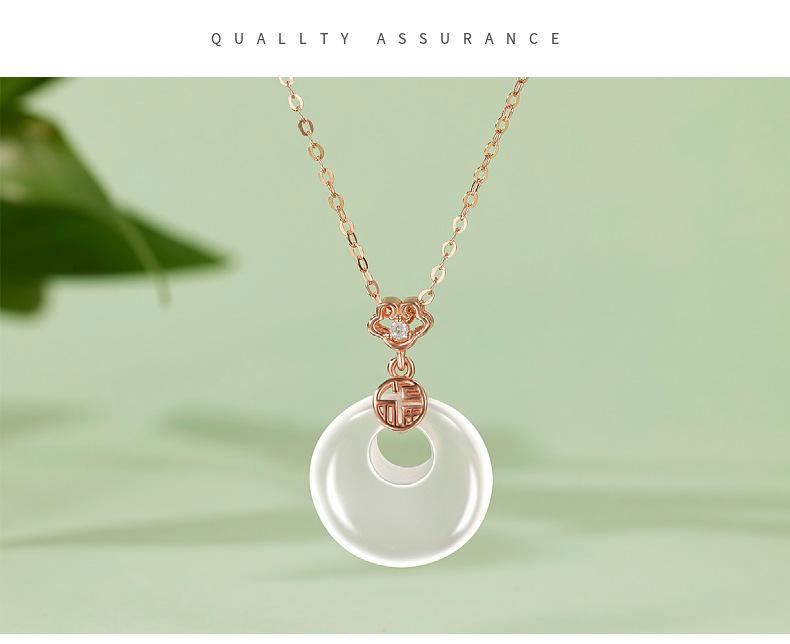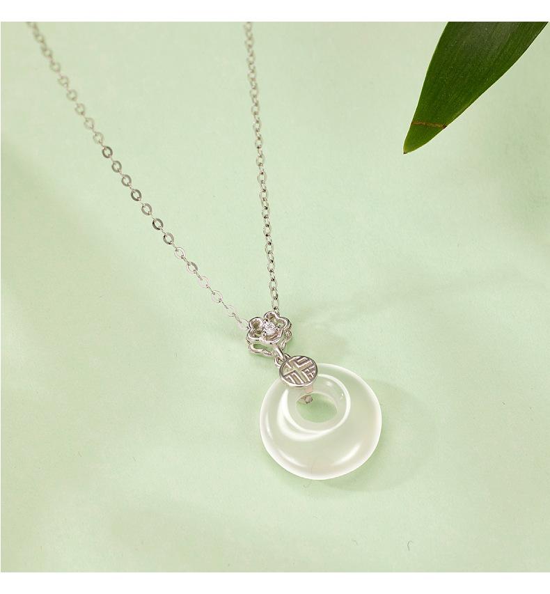 Collar con hebilla de la fortuna de calcedonia de plata esterlina S925 de Silver City para mujer, nuevo estilo chino, colgante de ágata blanca de la marca Xiangyun Fortune.