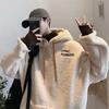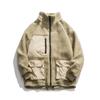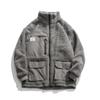 Chaqueta de forro polar de cordero personalizada para hombre y mujer, otoño e invierno, con logotipo bordado grueso y cuello alto, chaqueta informal de forro polar de moda.