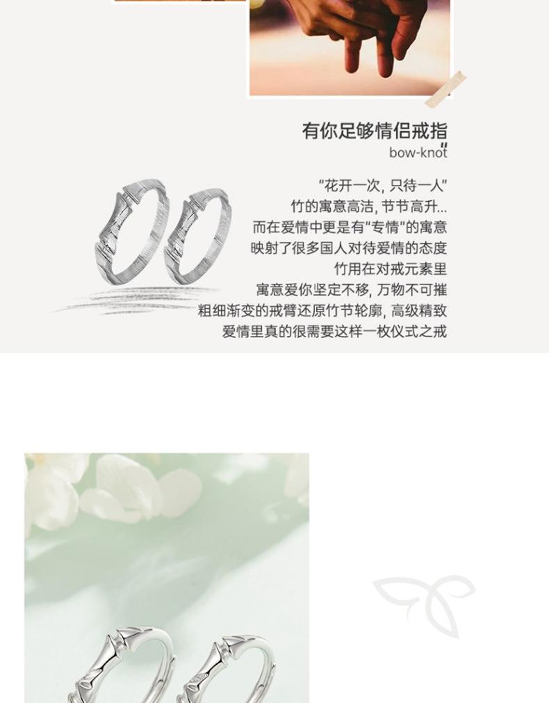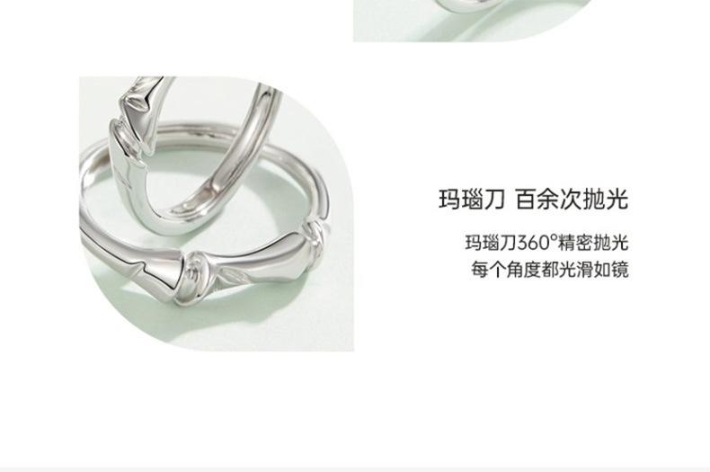 Anillo de pareja de bambú de plata S925, plata esterlina, para mujer, ligero, de lujo, diseño de nicho de alta gama, anillo para hombre, regalo de cumpleaños