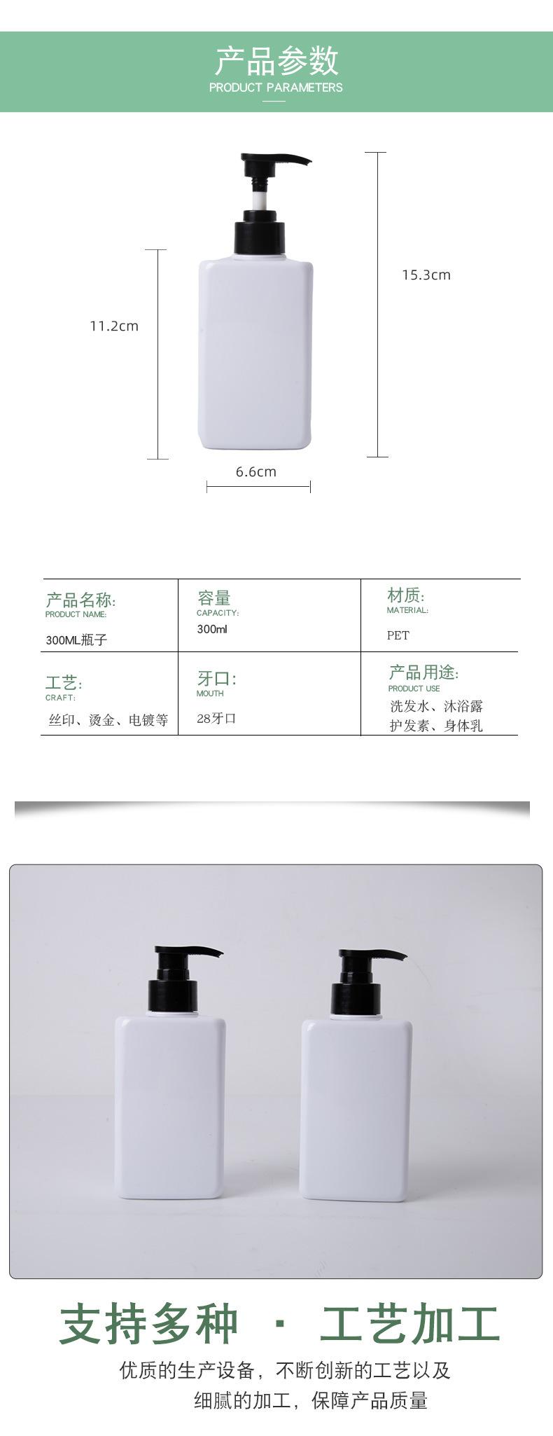 Botella de Plástico PET de 300 ml para Champú, Acondicionador, Botella Cuadrada para Gel de Cuerpo