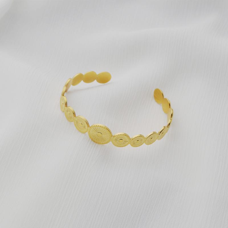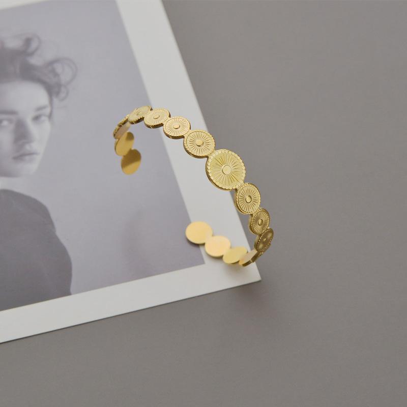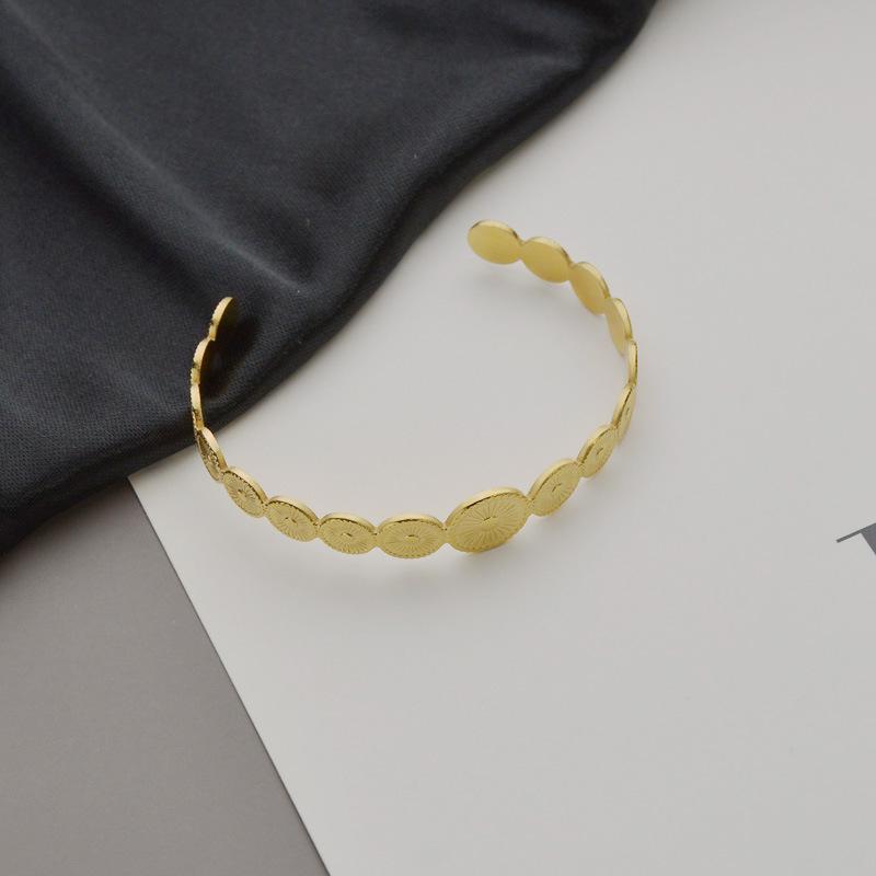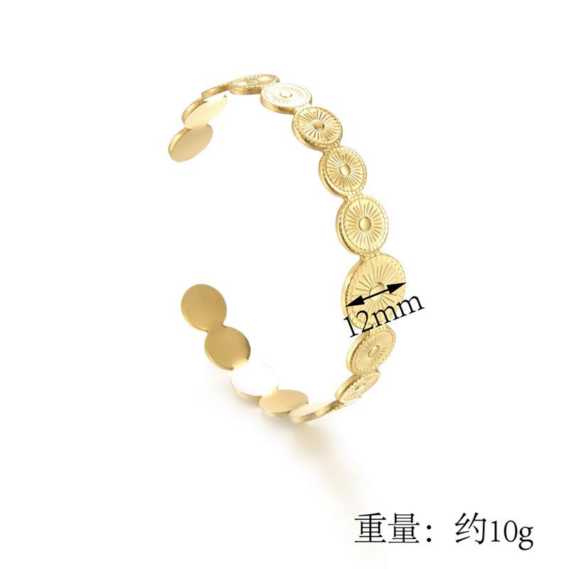 Compra Pulsera de Apertura con Patrón Redondo Conectado de Estilo Francés Simple Estilo Retro Joyería de Mano de Acero de Titanio con Oro de 14K Personalizada para Mujer al por mayor en Joom.pro