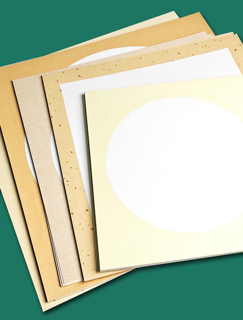 Espejo de lente de cartón de papel Xuan engrosado, papel de cáñamo de caligrafía redonda antigua cruda Xuan, abanico de pintura china en blanco, fábrica al por mayor