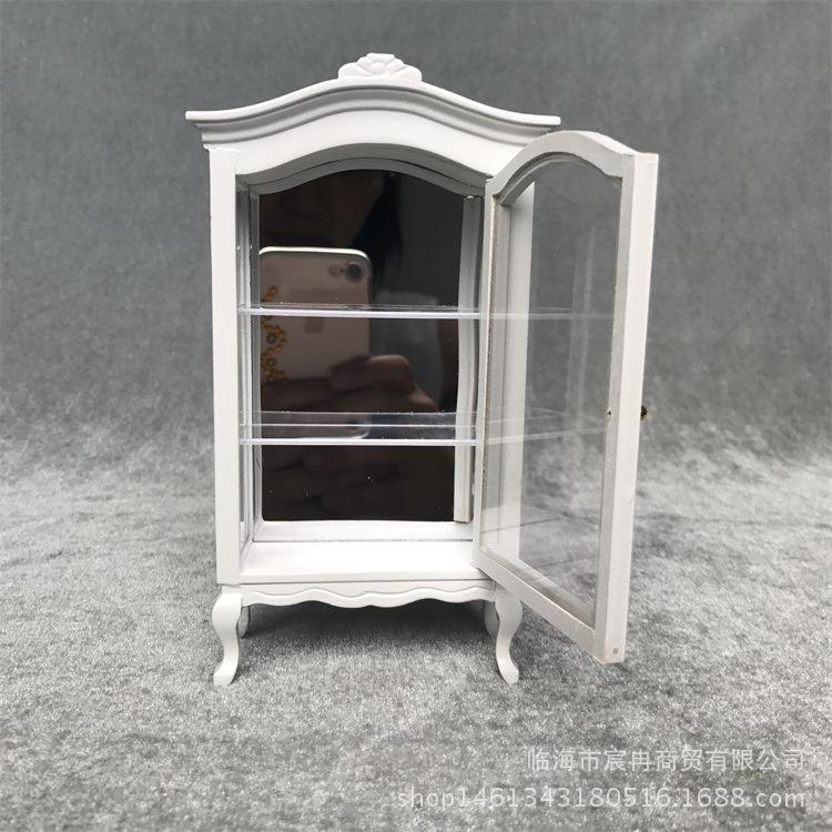 Gabinete de estilo europeo blanco 1:12, forma hermosa y elegante, blanco puro y versátil, se puede usar como mueble de baño, mueble de sala de estar, estantería, mueble de pasillo, la puerta del gabinete se puede abrir, ¡hay un espejo dentro del gabinete!
