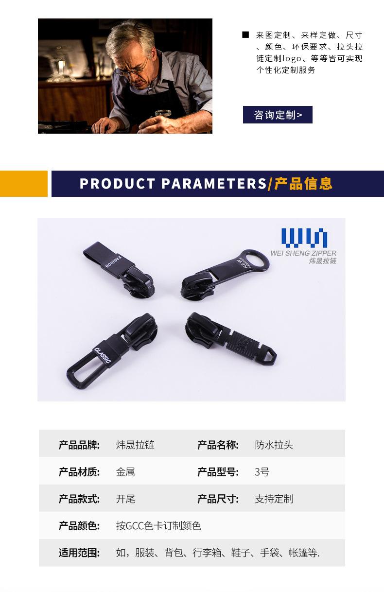 No. 3 cremalleras autoblocantes de aleación para chaqueta y equipaje, con cabezal de cremallera y cola abierta, deslizador impermeable disponible