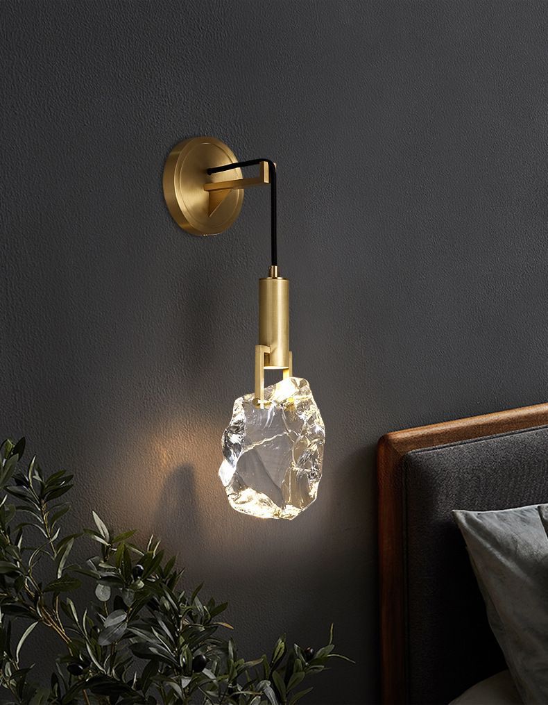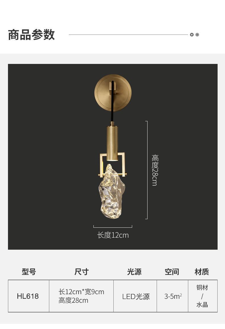 Lámpara de Pared Transfronteriza Todo Cobre Cristal Nórdico Creativo Minimalista Lámpara de Entrada Lámpara de Pasillo Sala de Estar Dormitorio Lámpara de Noche Lámpara LED