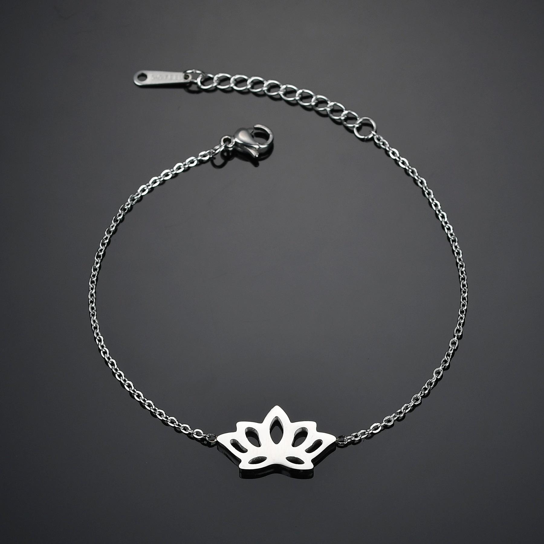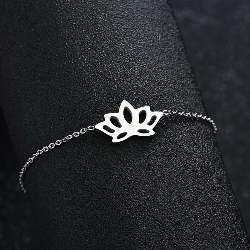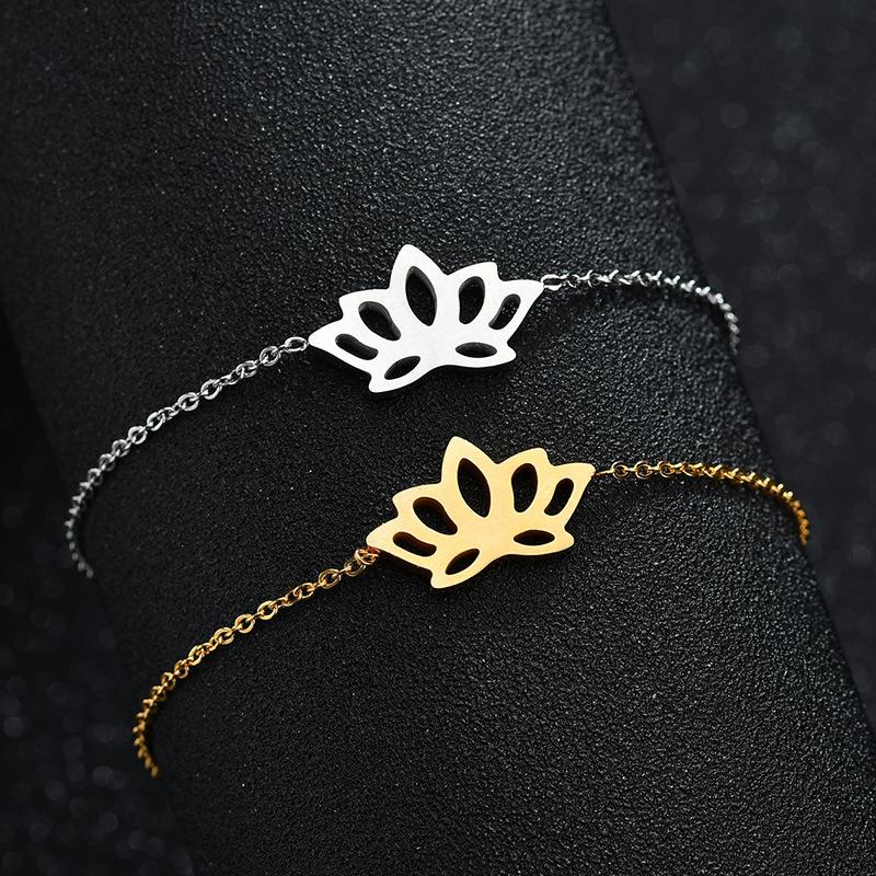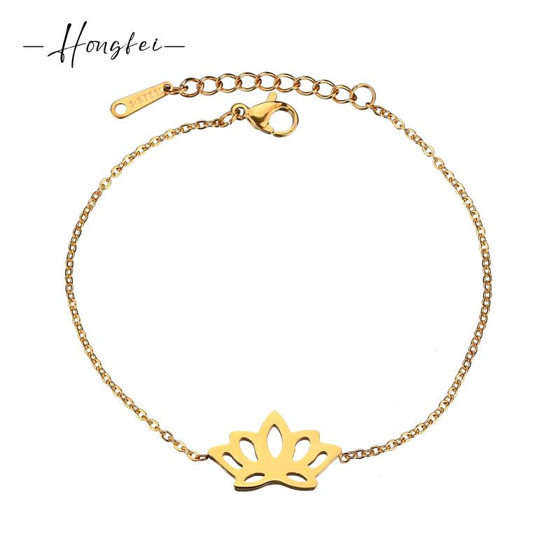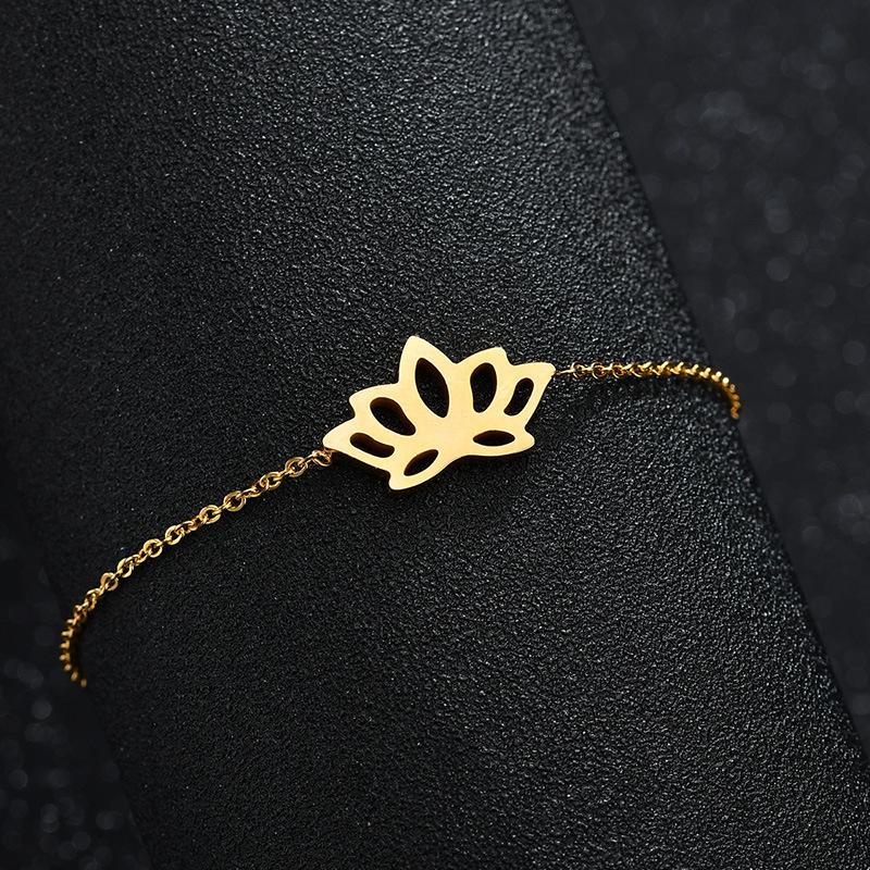 Pulsera europea y americana transfronteriza nueva ins estilo simple hueca Loto oro de 18 quilates moda para mujer acero inoxidable cadena O