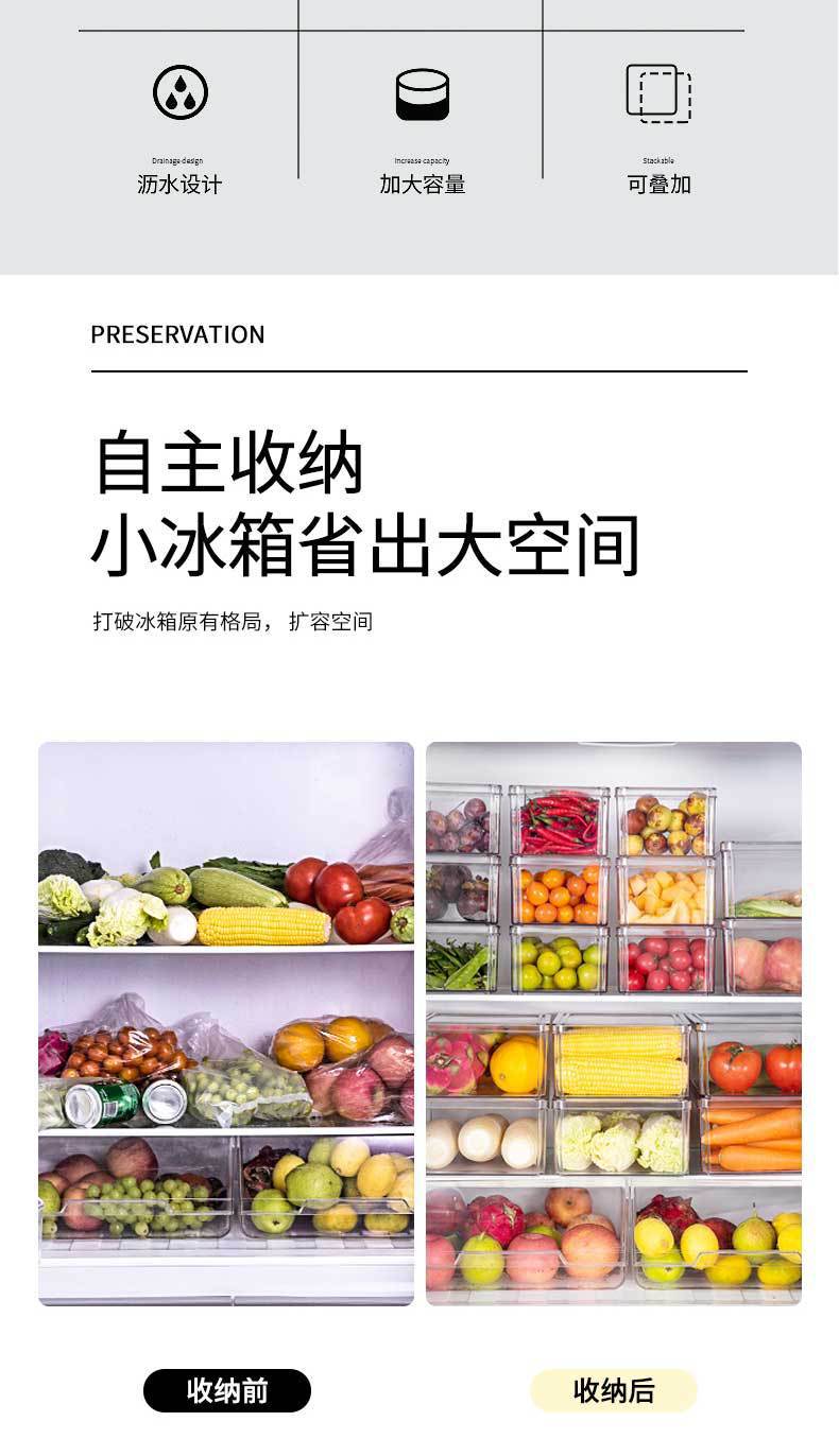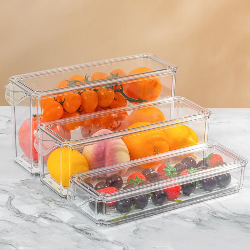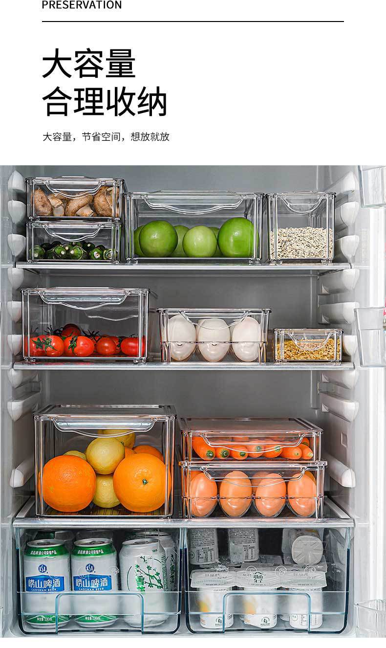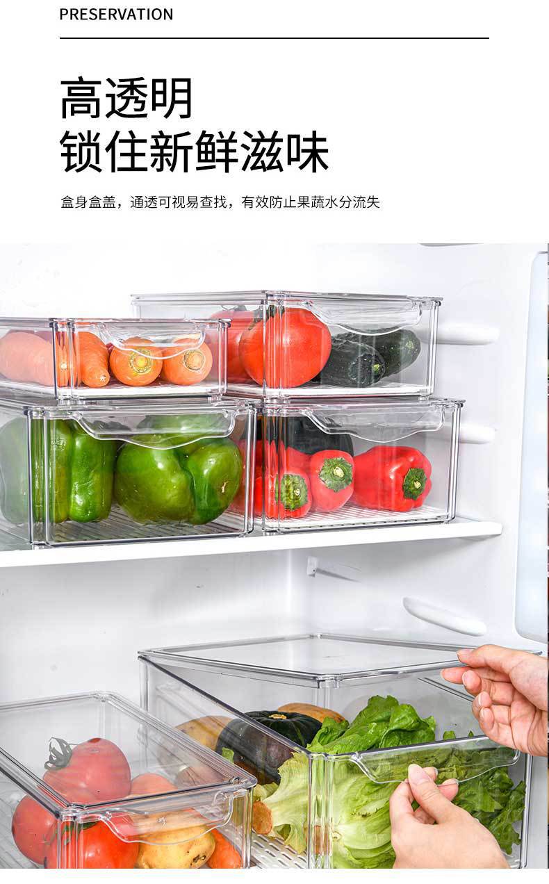 Caja de almacenamiento de refrigerador de plástico, tipo cajón, transparente, rectangular, para mantener frescos los huevos del hogar, caja de almacenamiento para congelar alimentos