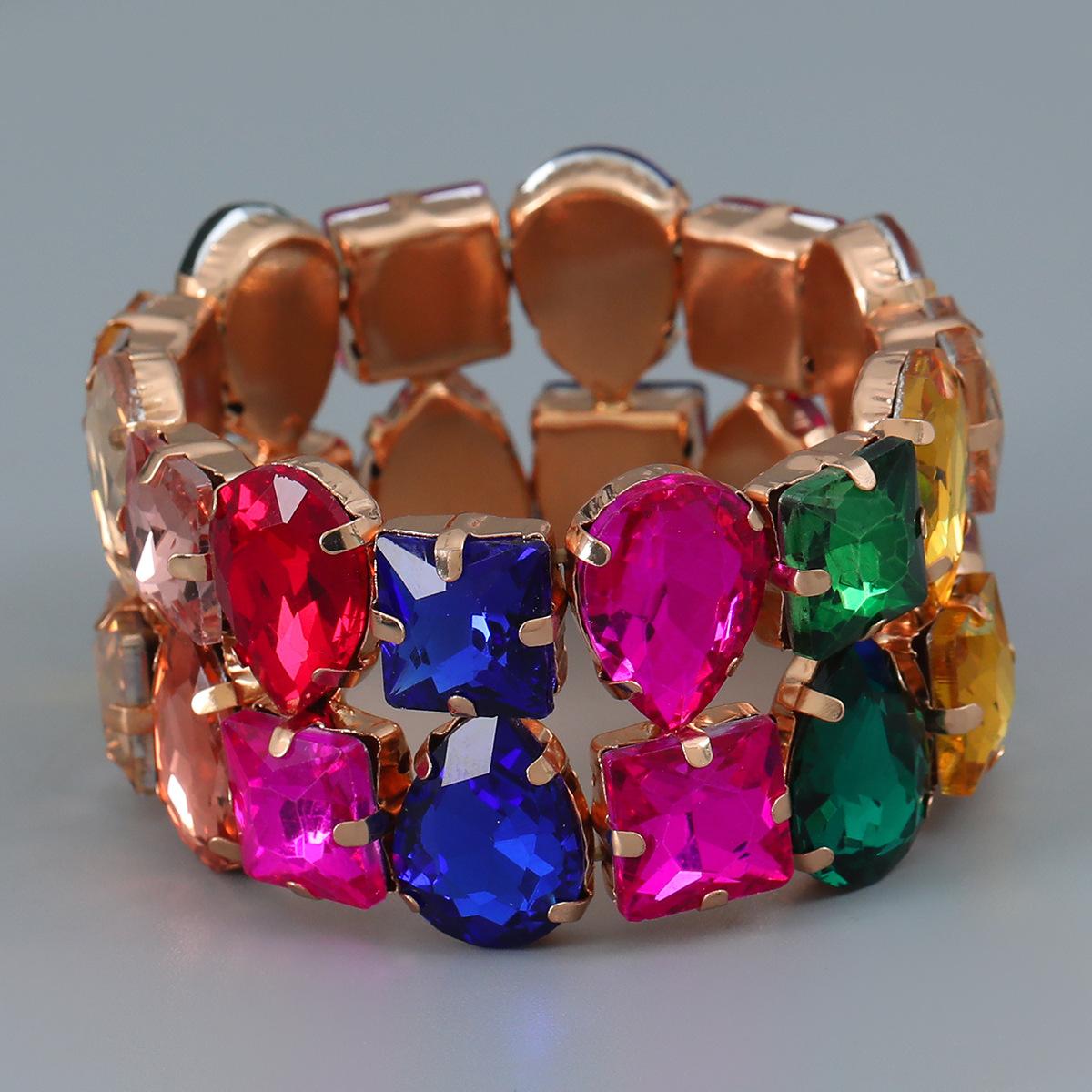 Compra Pulsera europea y americana para mujer con diamantes completos, pulsera hip hop, doble cristal, diamante retráctil elástico, joyería al por mayor, pulsera al por mayor en Joom.pro