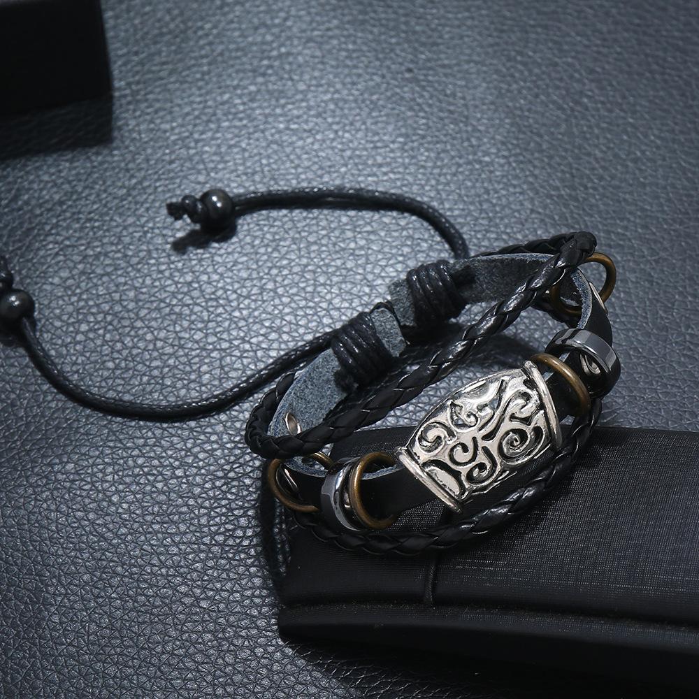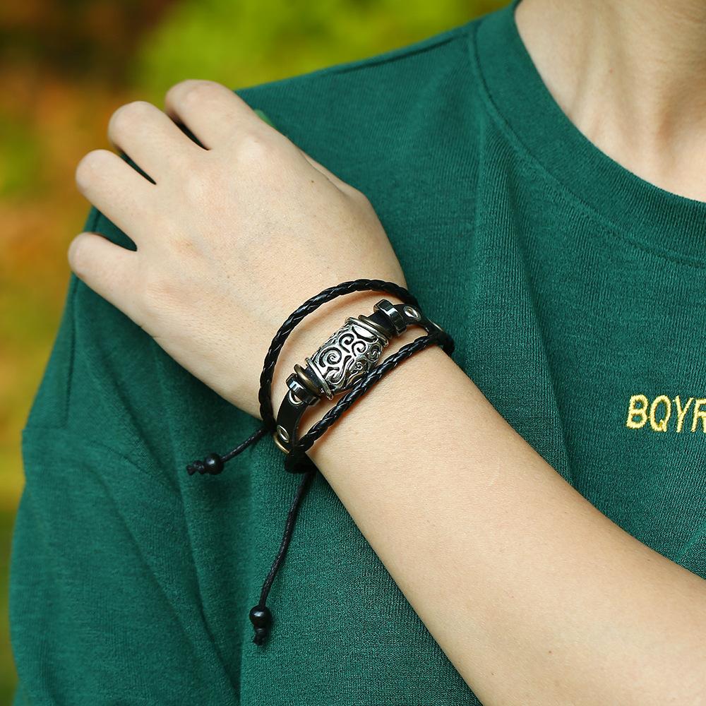 [Material]: Cuero vacuno + aleación + cuentas de madera + hilo encerado + PU