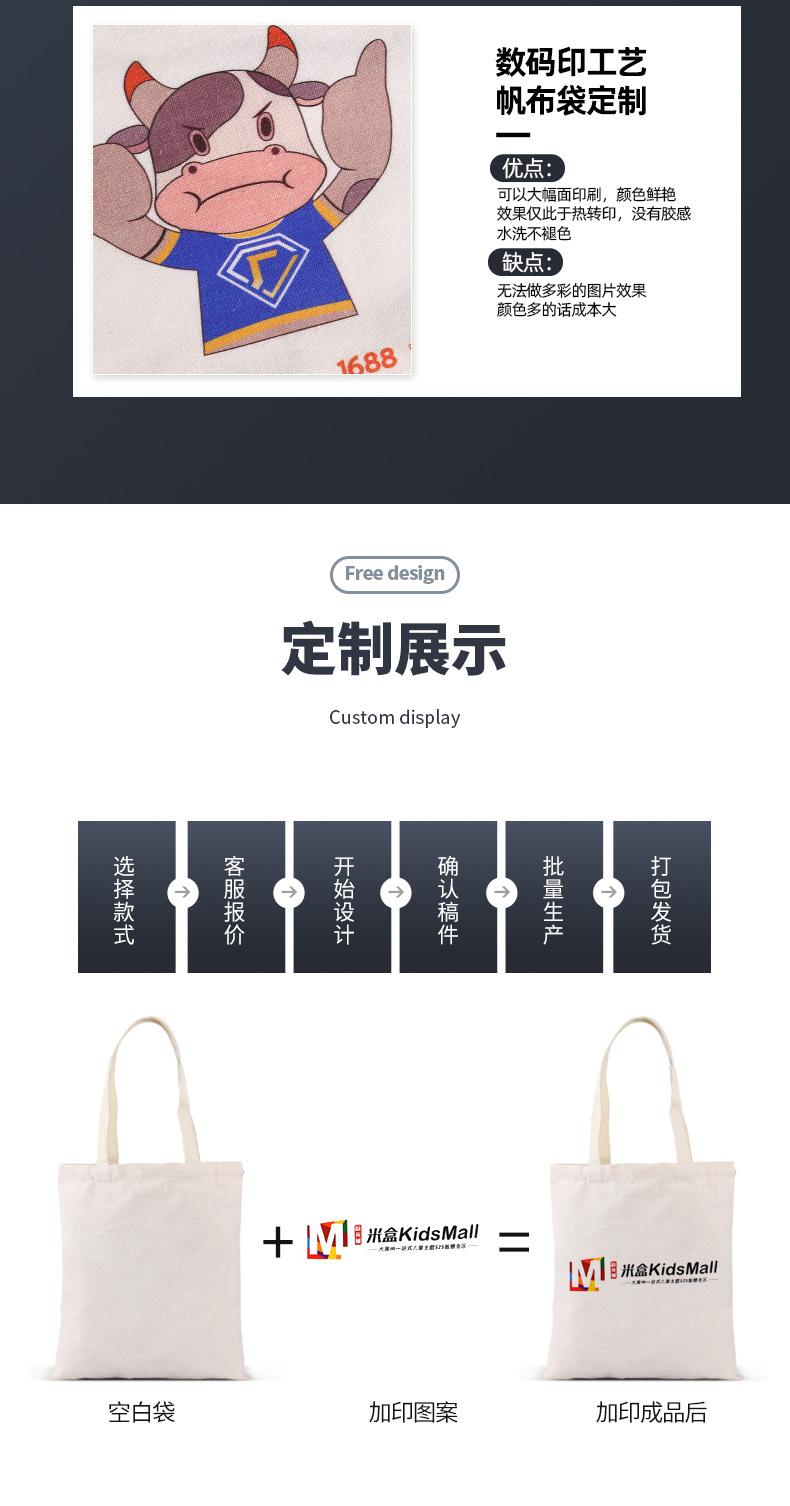 Bolsa de lona para niños de fábrica, venta al por mayor, bolsa de compras de lona en blanco, bolsa de algodón con logotipo impreso