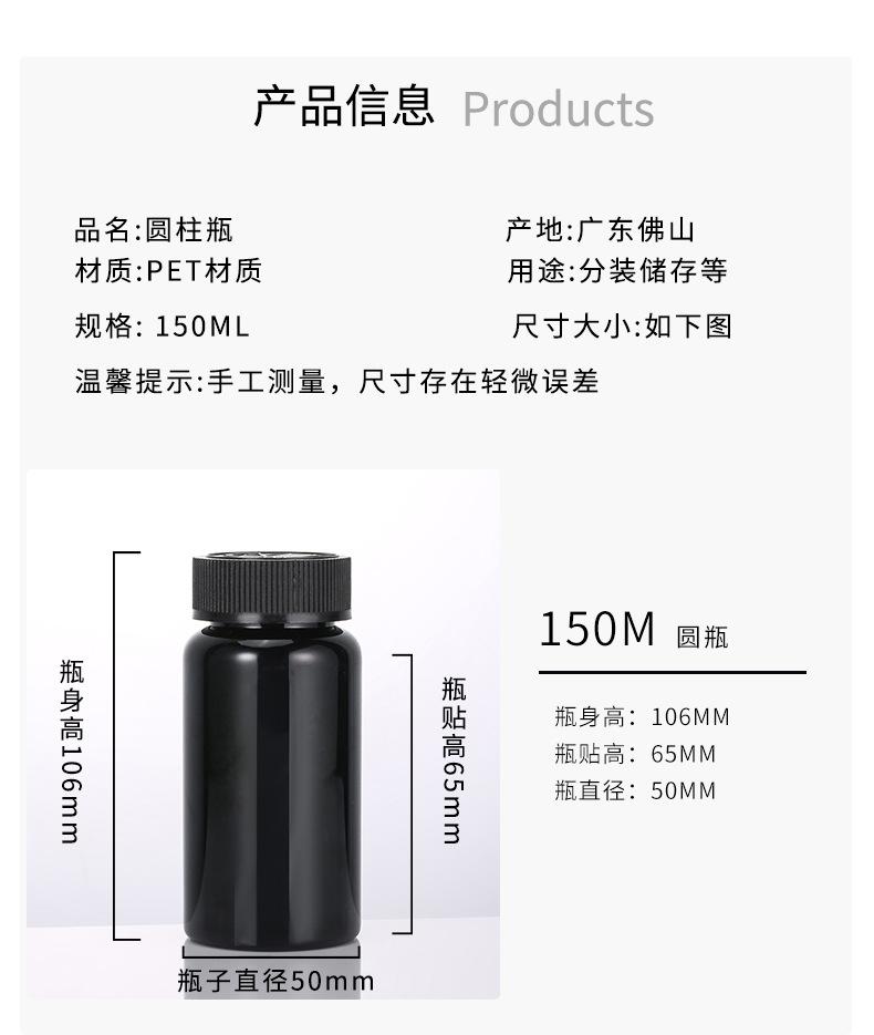 Botella cilíndrica blanca de 150 ml, para medicamentos para mascotas, para el cuidado de la salud, con tapón de rosca a presión, de pequeña capacidad