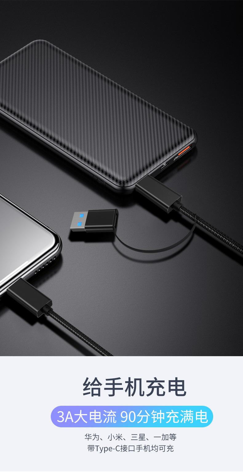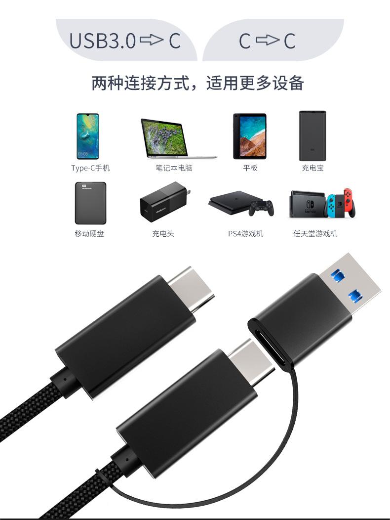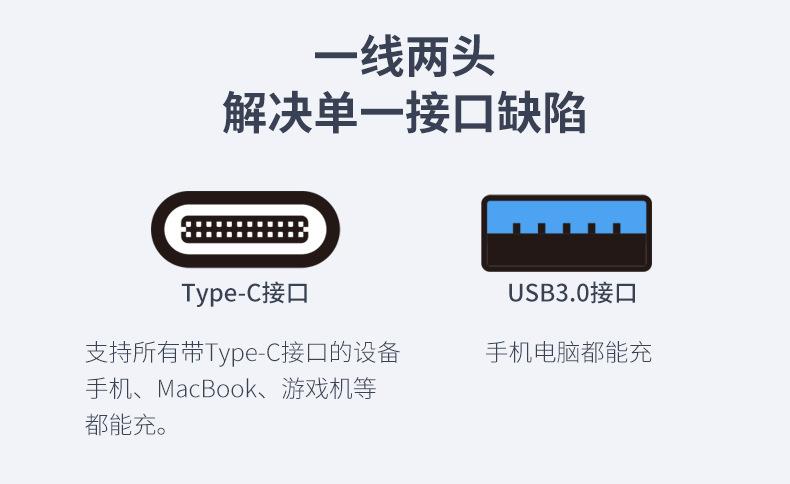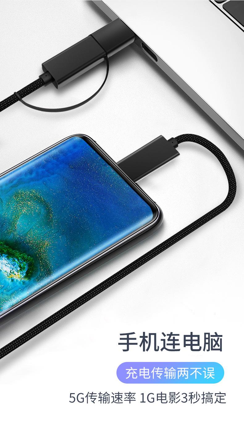 Cable de datos tipo C trenzado de nailon dos en uno PD3.0 transmisión multifunción adaptador de carga rápida cable de carga