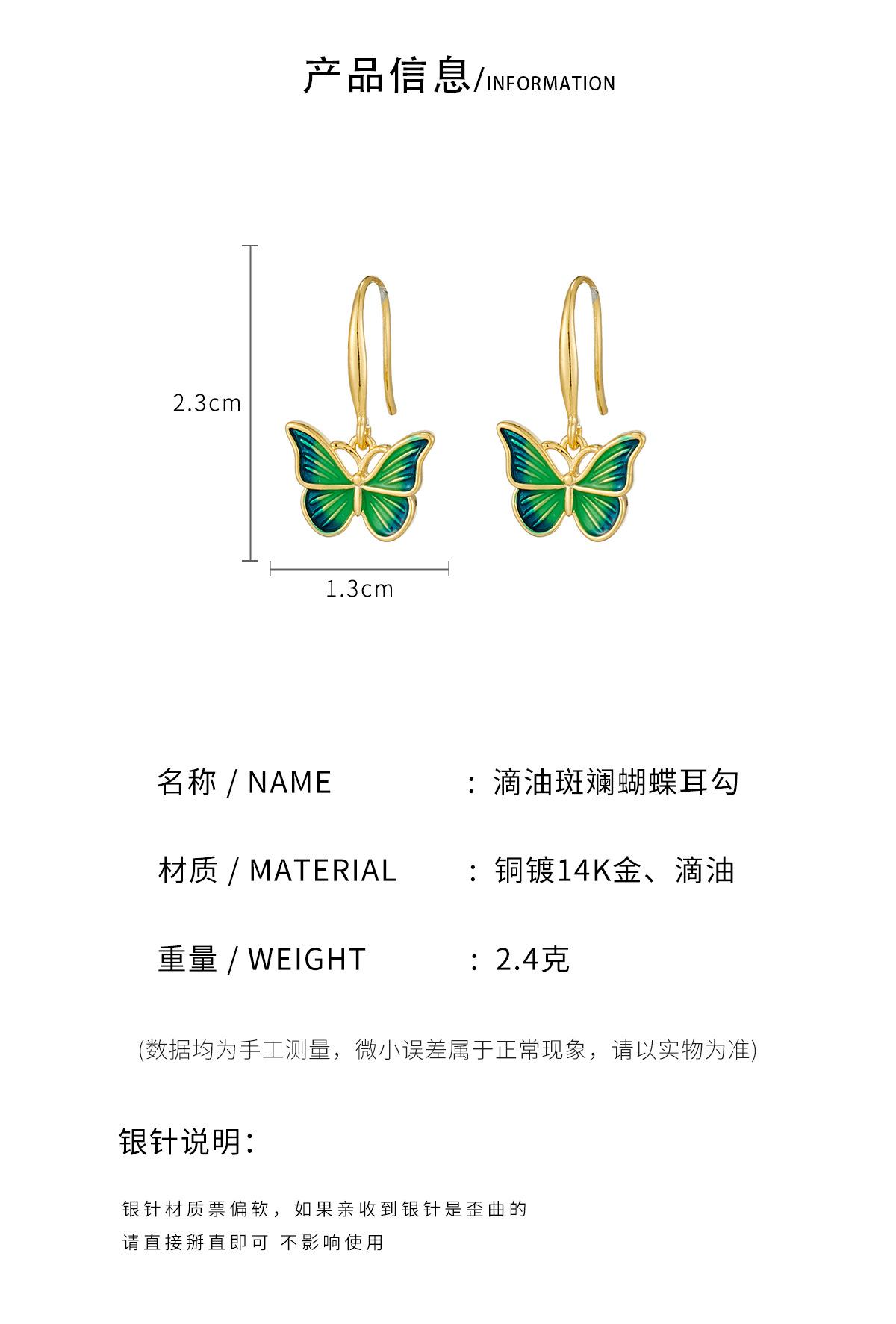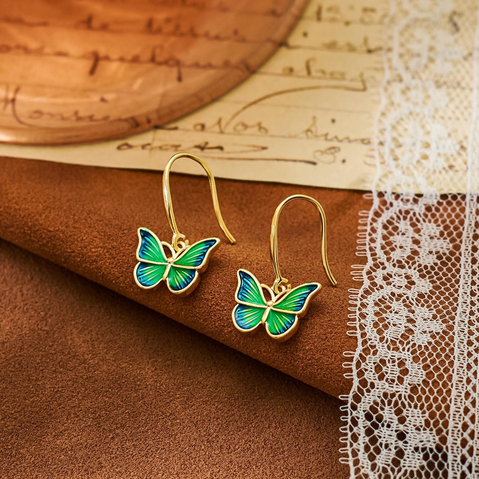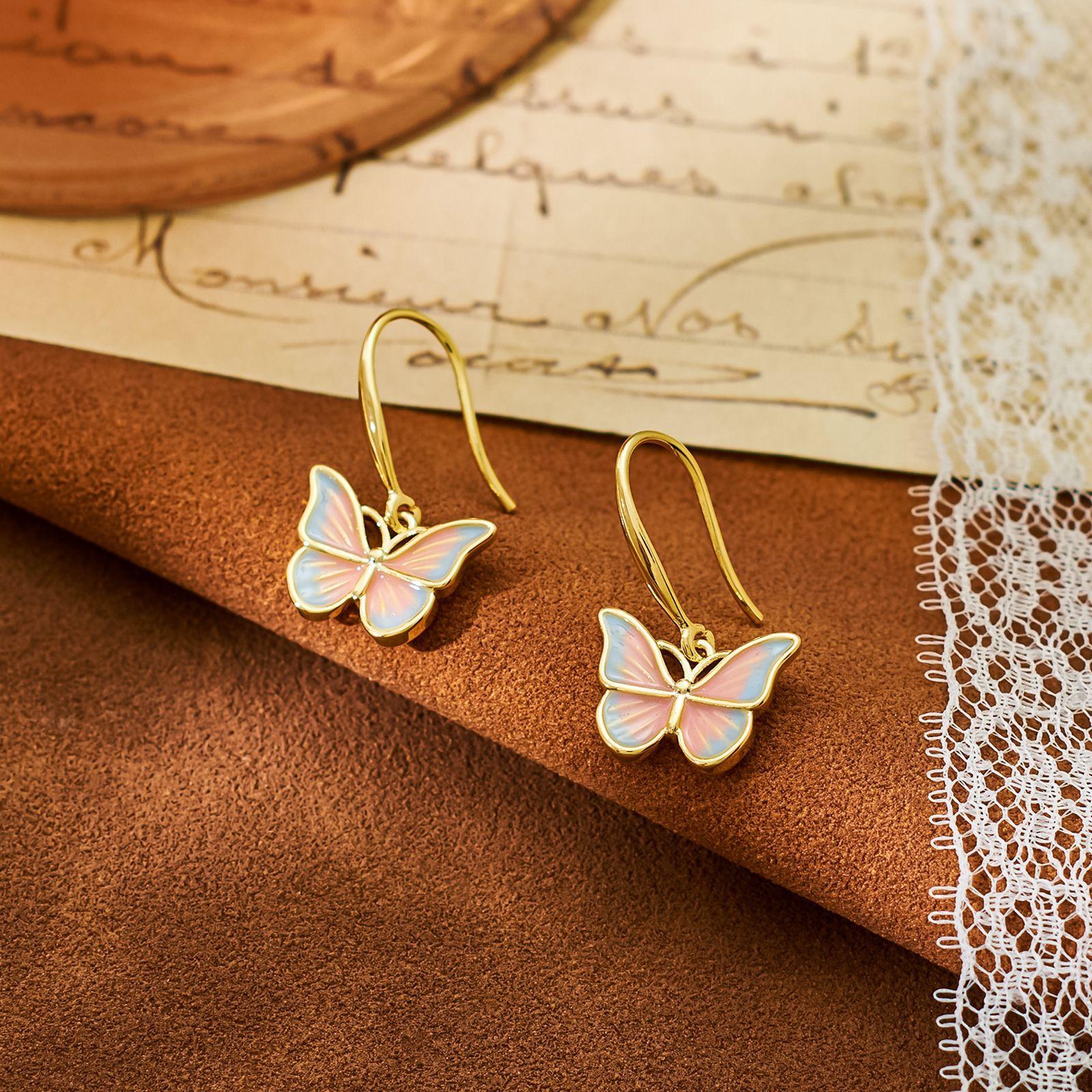Populares Aretes de Gancho de Mariposa de Degradado Colorido Estilo Bosque, Estilo Dulce Femenino, Aretes Frescos y a la Moda, Aretes Chapados en Oro Real