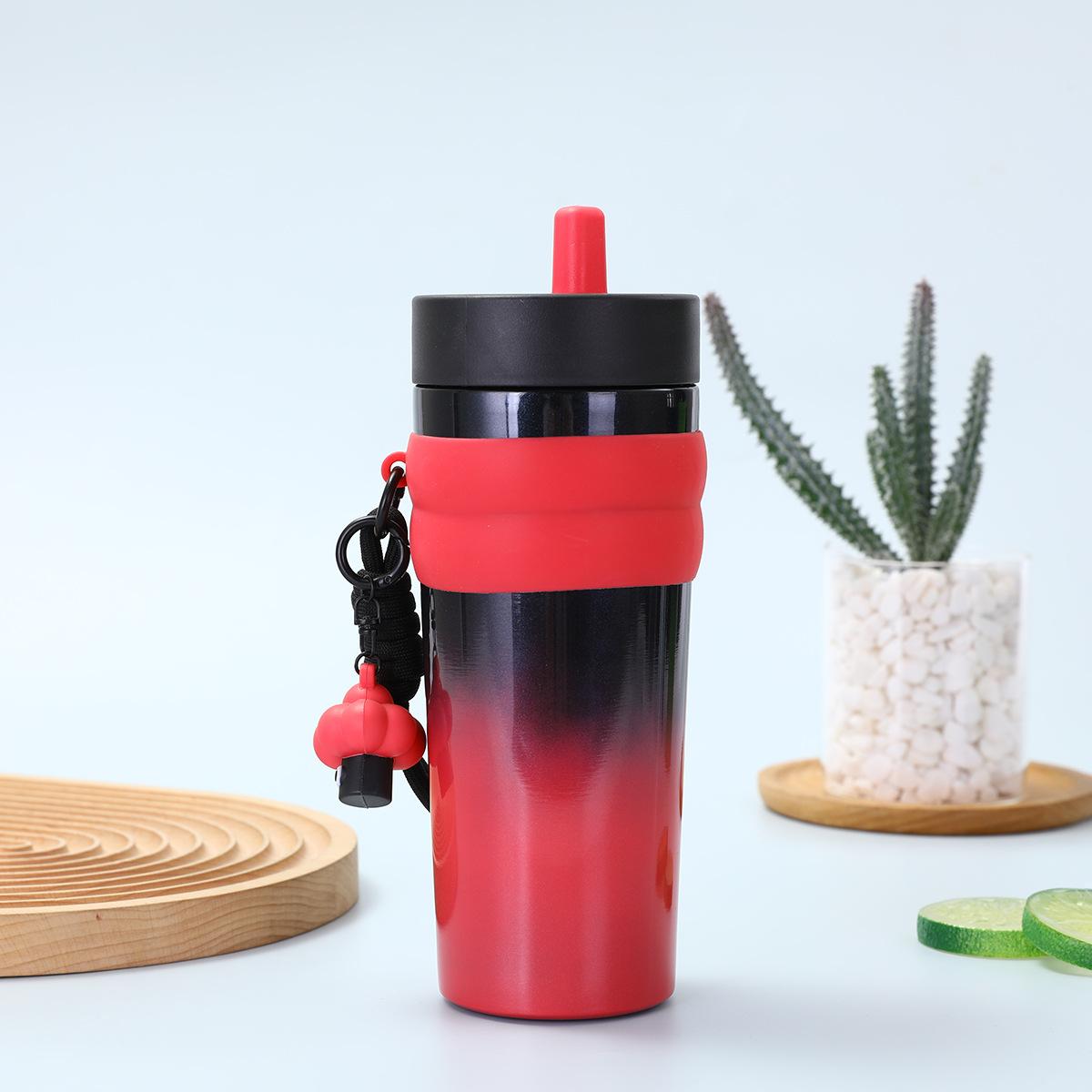 Taza de paja degradada de alto valor transfronteriza, taza termo creativa de acero inoxidable 316, taza de café para coche deportivo al aire libre