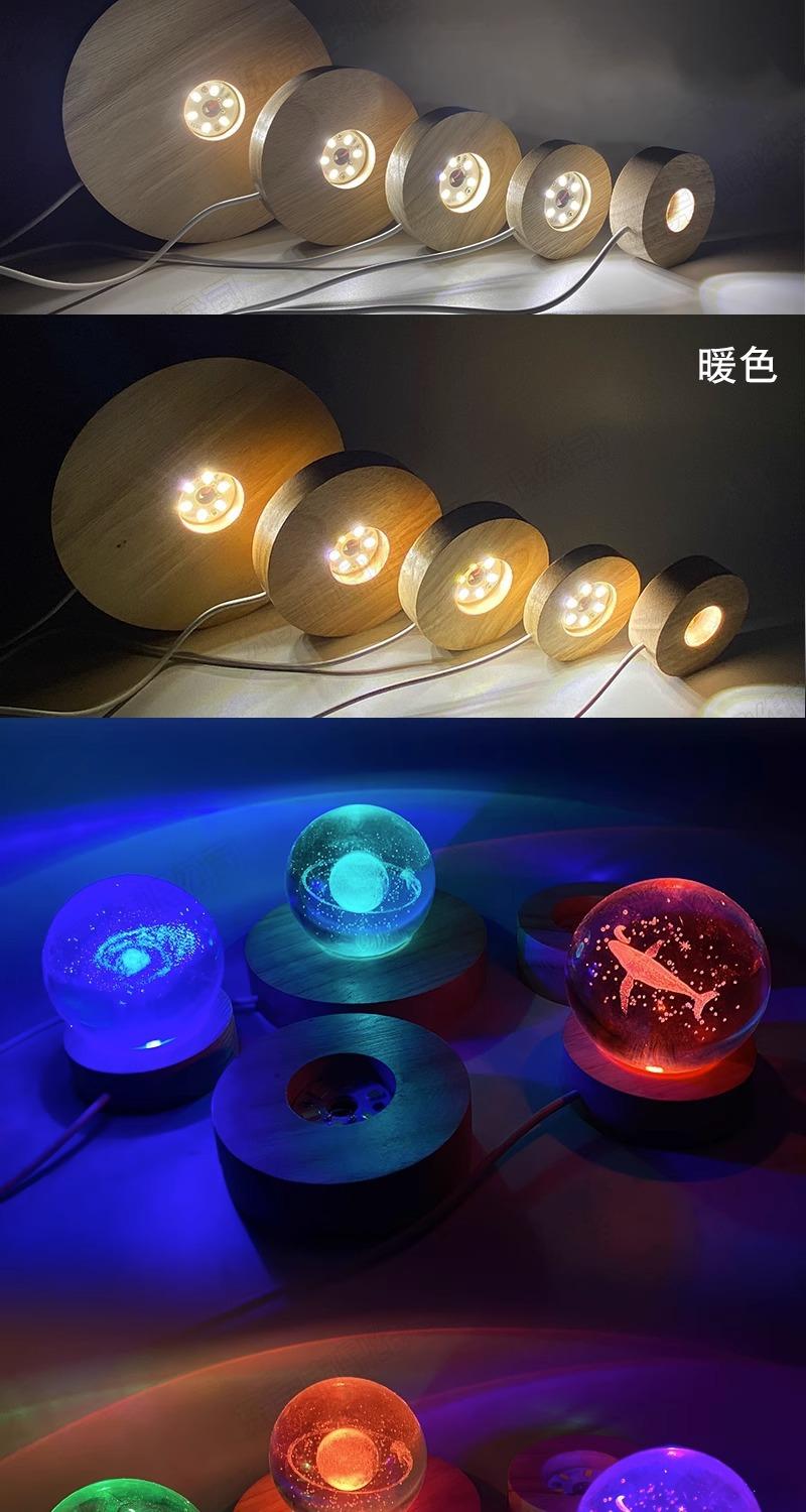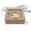 Lámpara de mesa de noche de madera maciza con forma de bola de cristal luminosa, base de madera, soporte de luz nocturna redonda, luz cálida, LED blanco, con enchufe USB