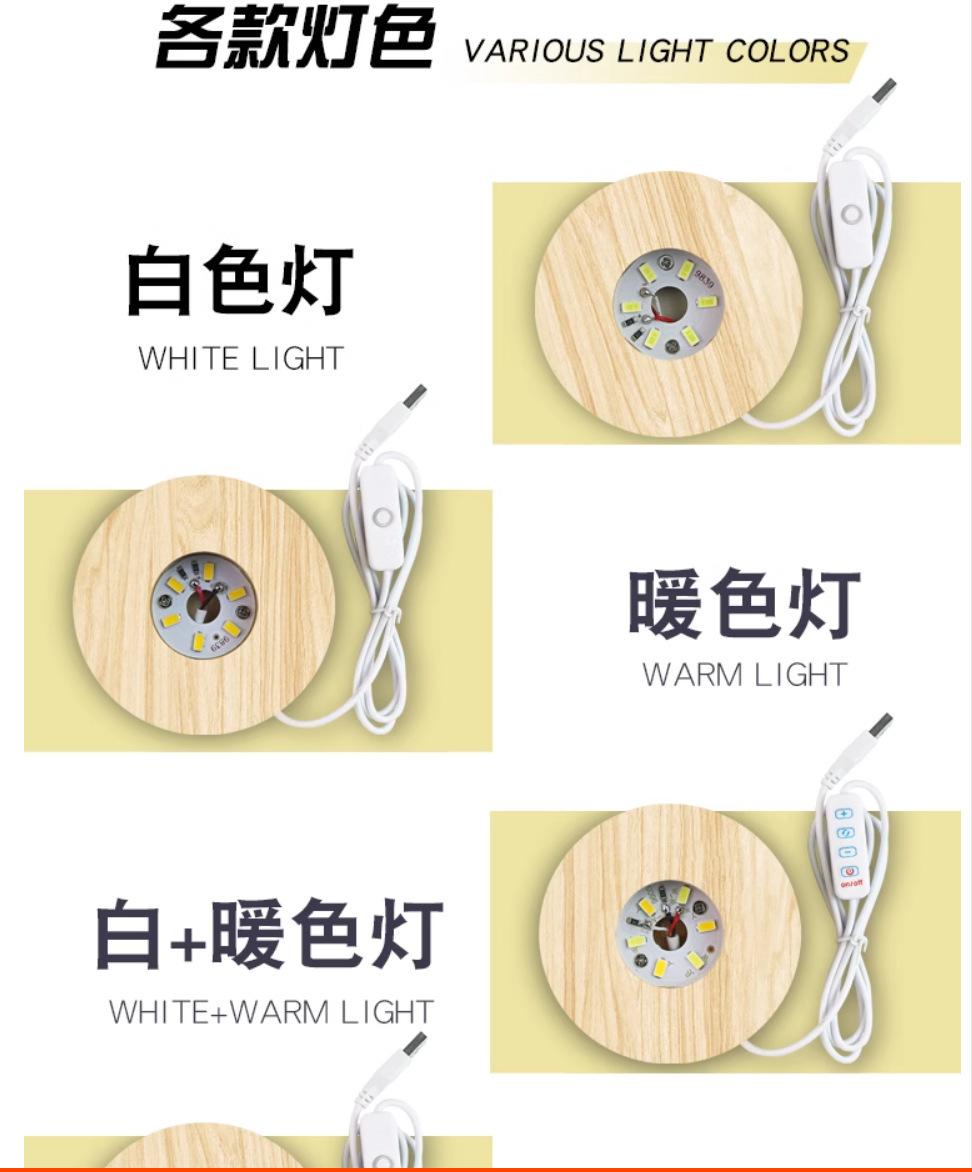 Round wood base (link default warm light), Square slotted base (inner diameter minus 2cm), Square without slot...