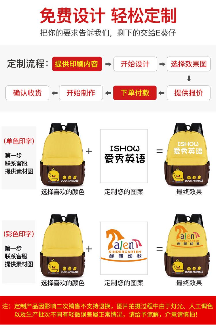 Mochila escolar con logotipo impreso para estudiantes de primaria, venta al por mayor, mochila de pato amarillo claro para niños, nueva mochila de hombro grande para clase de jardín de infantes