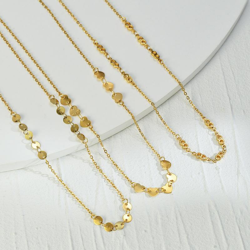 Collar de acero inoxidable estilo retro francés para mujer, diseño de nicho, oro de 14 quilates, con patrón simple, joyería de una sola pieza.