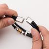 [Material del producto]: Acero inoxidable + cuerda trenzada de cuero genuino