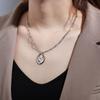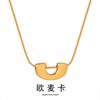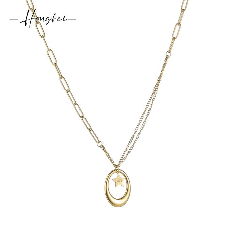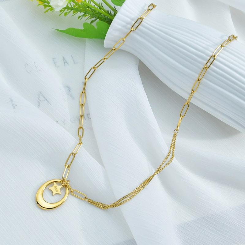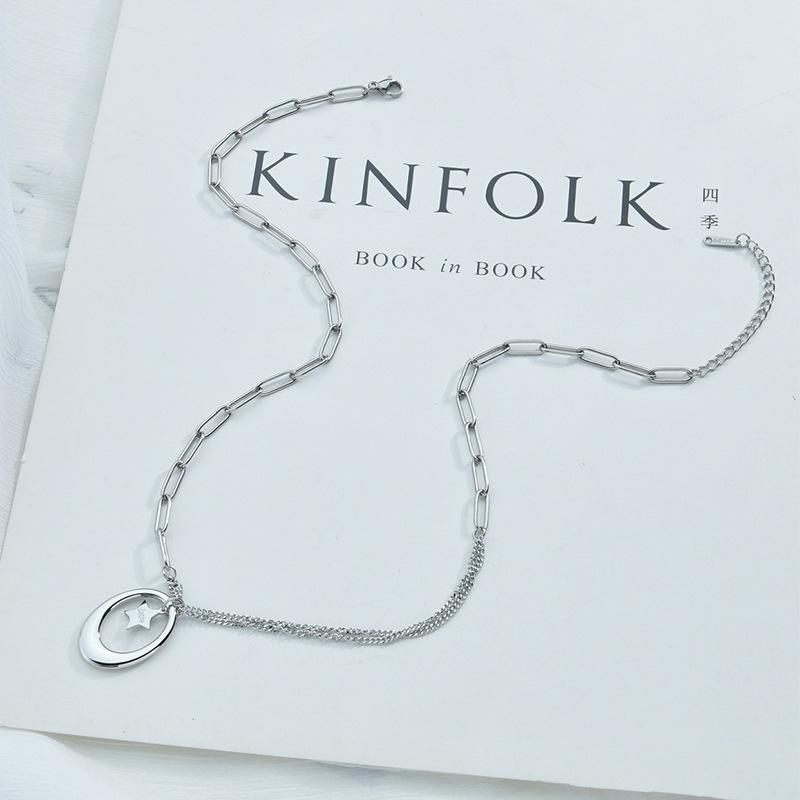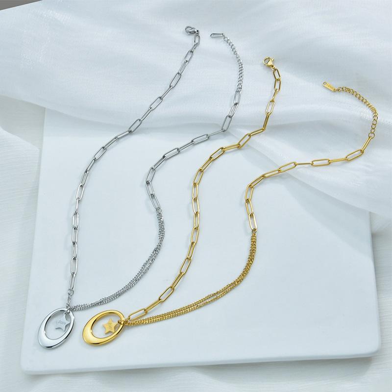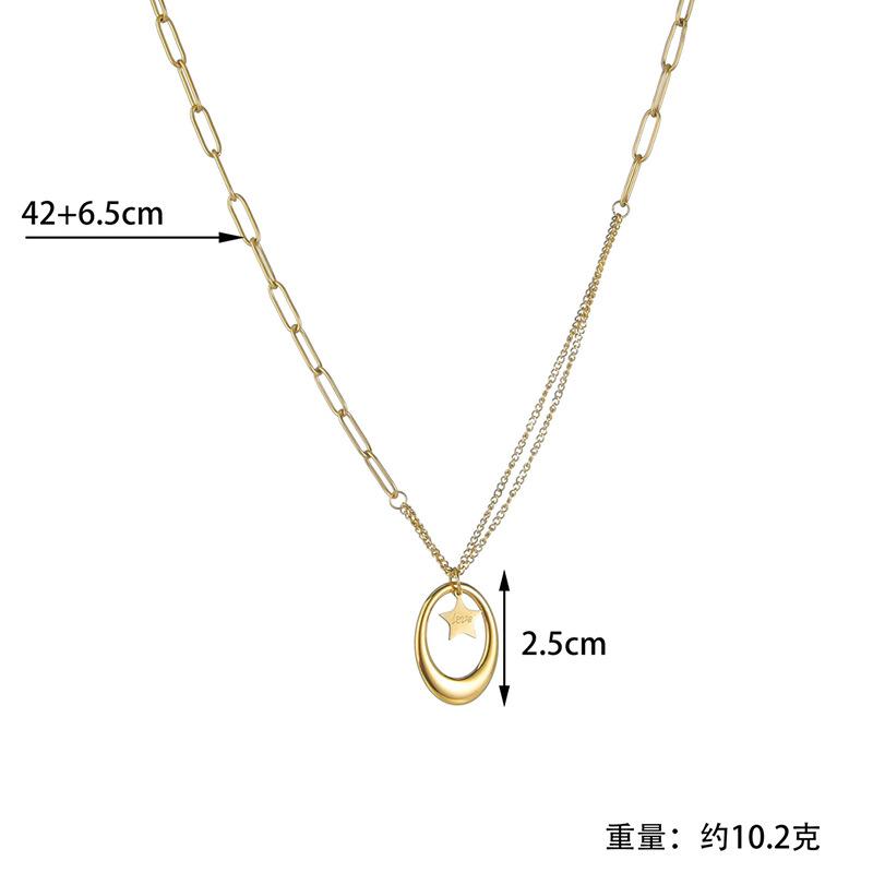 Collar con colgante de estrella de cinco puntas ovalada con superficie de paisaje simple europeo y americano, cadena de costura para mujer, cadena de clavícula de acero inoxidable, joyería