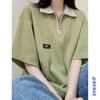 Camiseta de manga corta estilo academia de colores contrastantes 2024, estilo polo, informal, holgada, para mujer, para verano, para parejas.