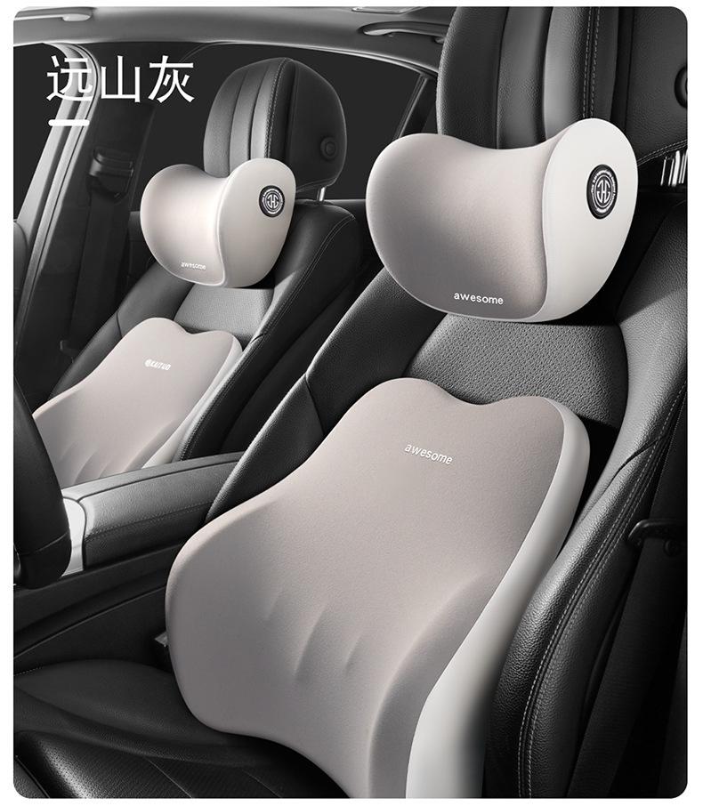 Soporte lumbar para reposacabezas de coche, artefacto de soporte para la espalda y la cintura, cojín suave de espuma viscoelástica, almohada de cabeza para masaje, universal para las cuatro estaciones