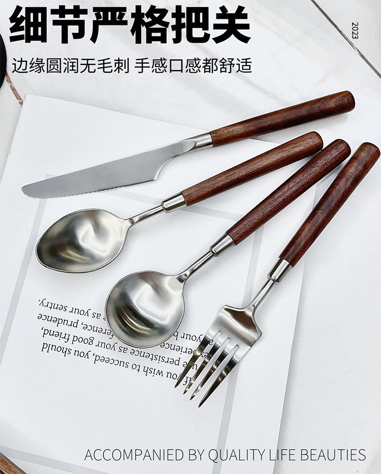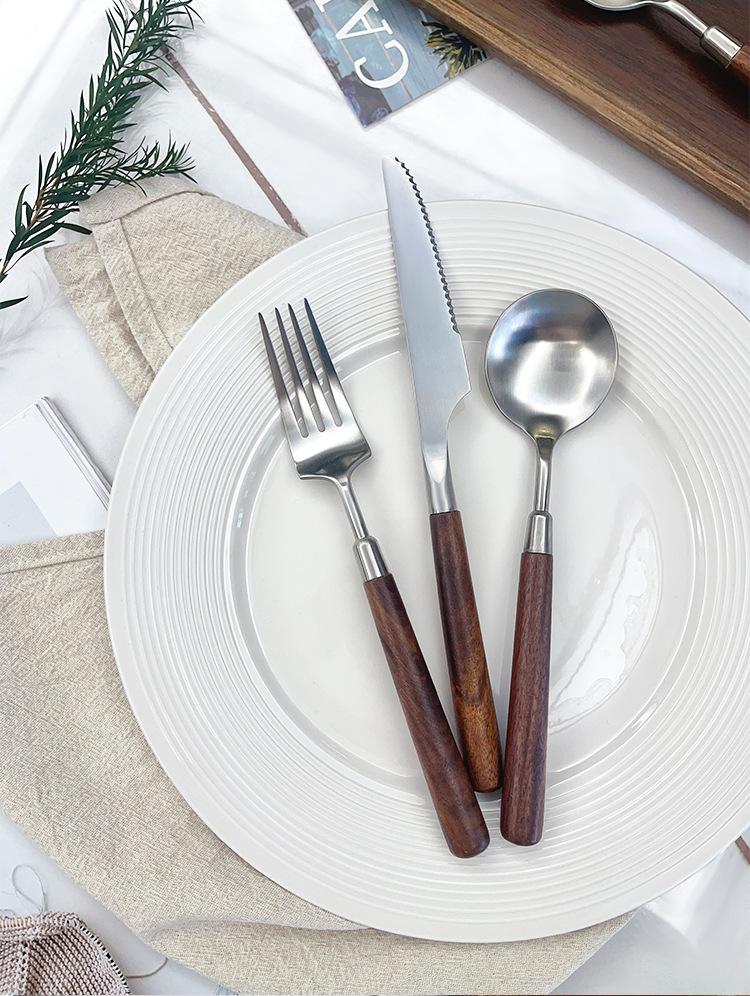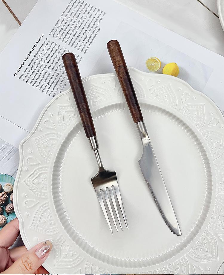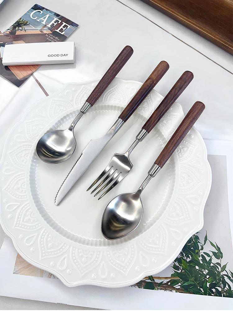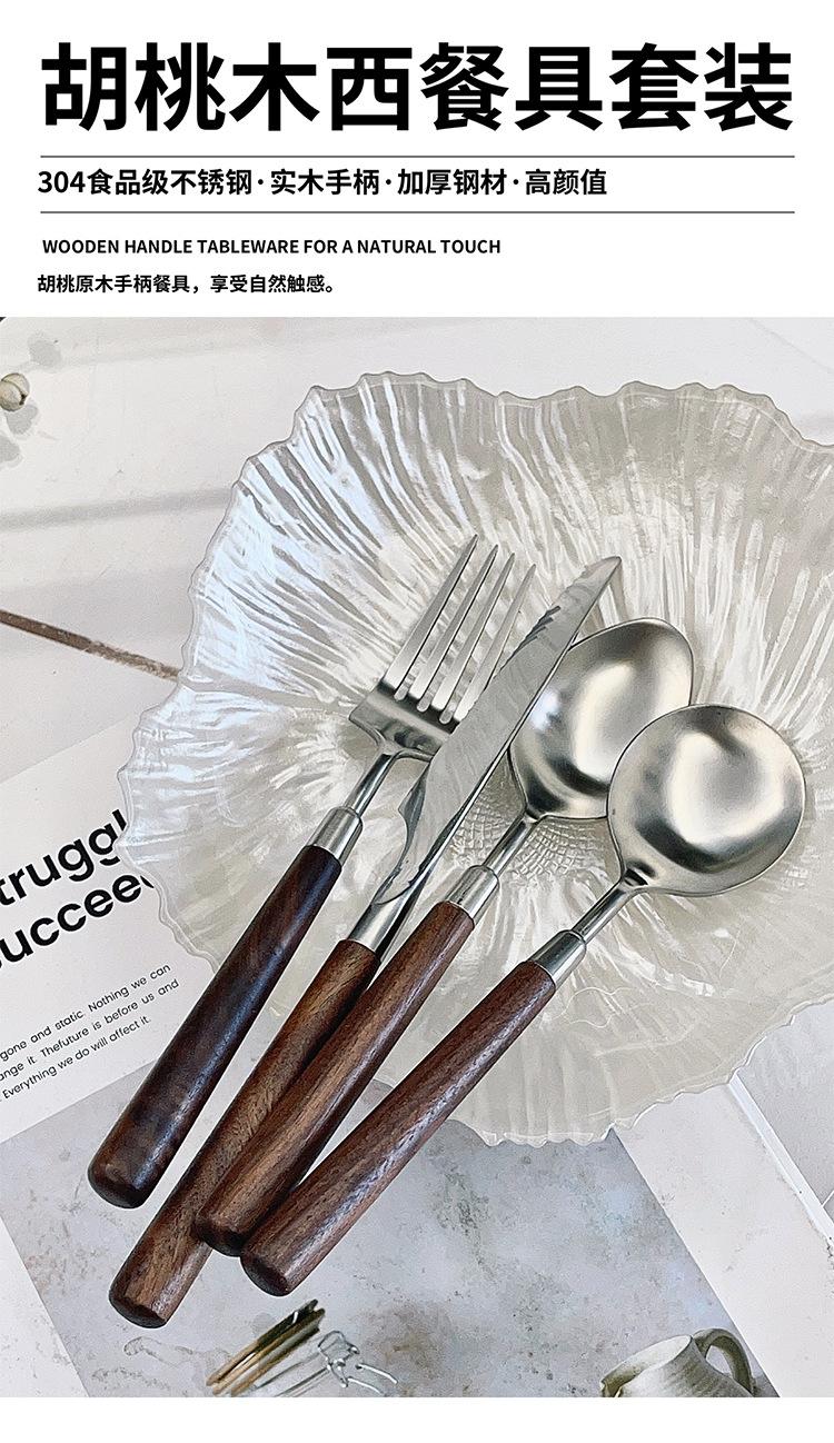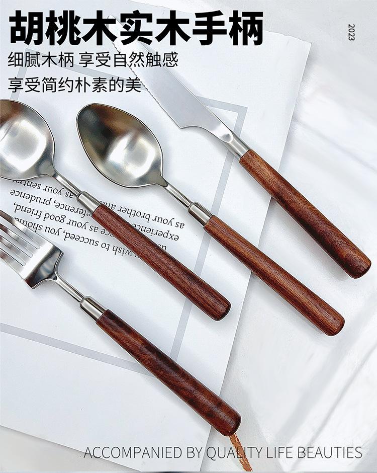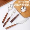 Cuchillo y tenedor occidentales de acero inoxidable 304 de alta calidad, mango de nogal y madera maciza, cuchillo y tenedor para carne, cuchara, cuchara de postre, vajilla adecuada