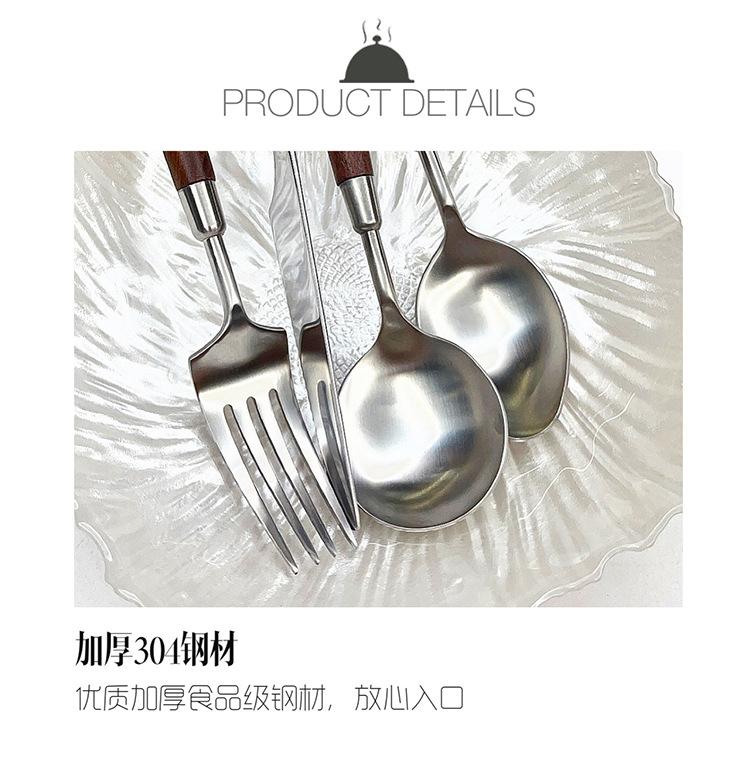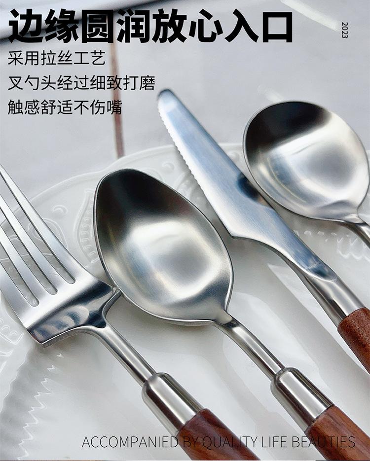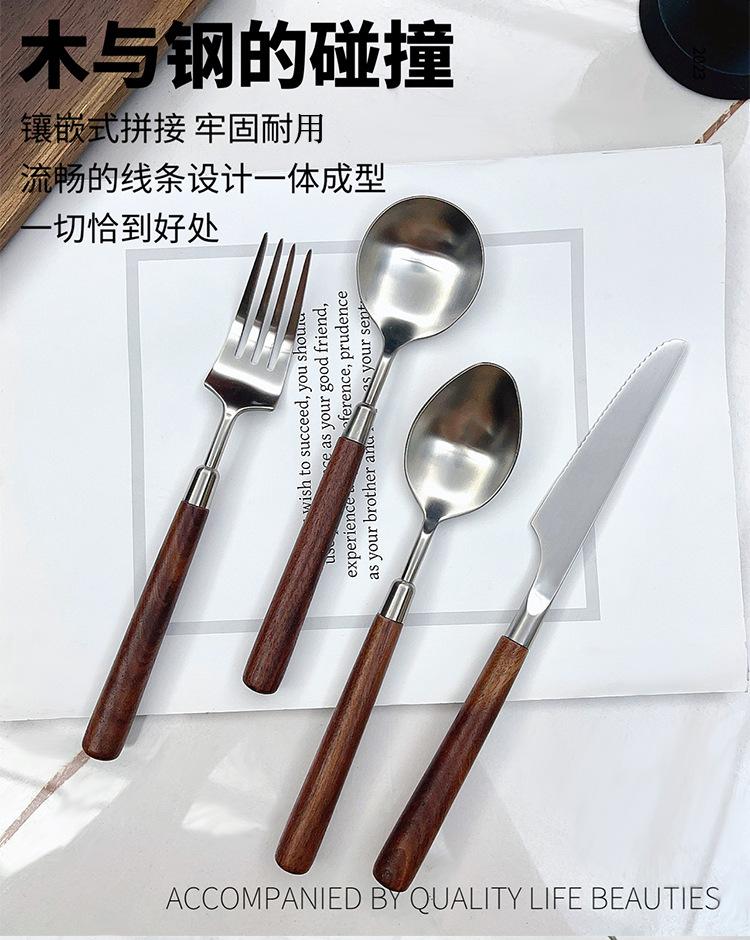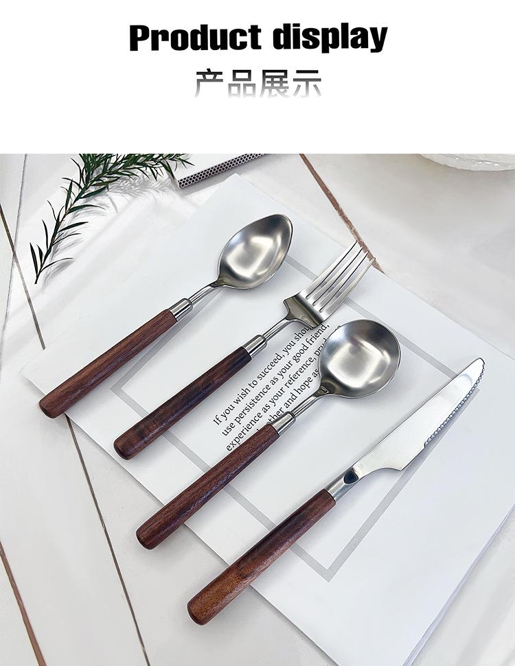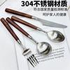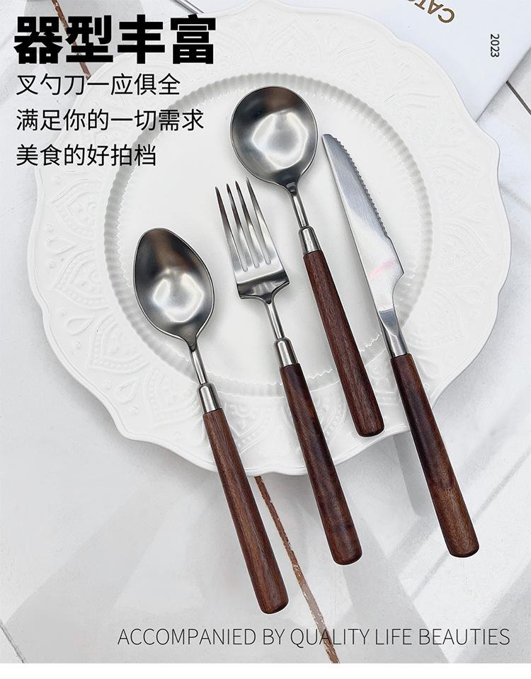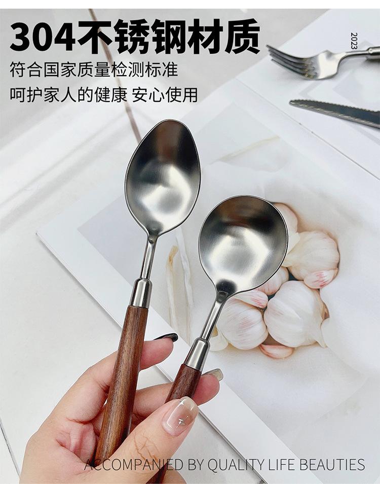Cuchillo y tenedor occidentales de acero inoxidable 304 de alta calidad, mango de nogal y madera maciza, cuchillo y tenedor para carne, cuchara, cuchara de postre, vajilla adecuada