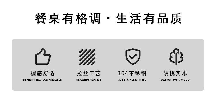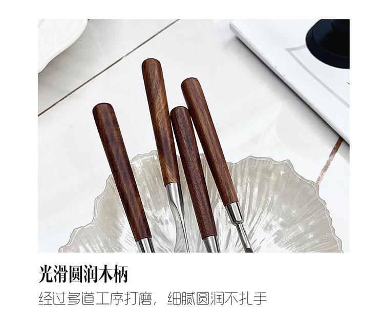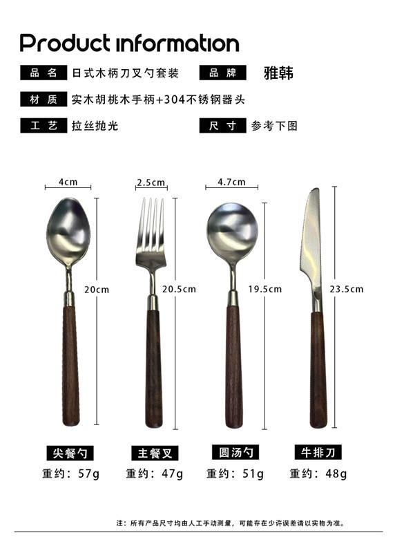 304 walnut round spoon, 304 Walnut Pointy Spoon, 304 walnut steak knife, 304 walnut master fork
