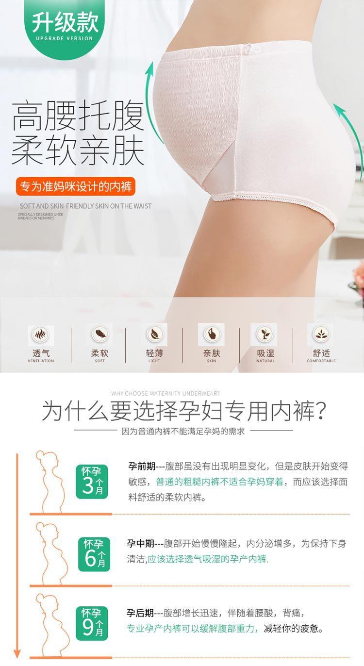 Ropa interior triangular de algodón de cintura alta ajustable con soporte para el vientre plisado de corteza para mujeres embarazadas, venta al por mayor directa de fábrica, entrega