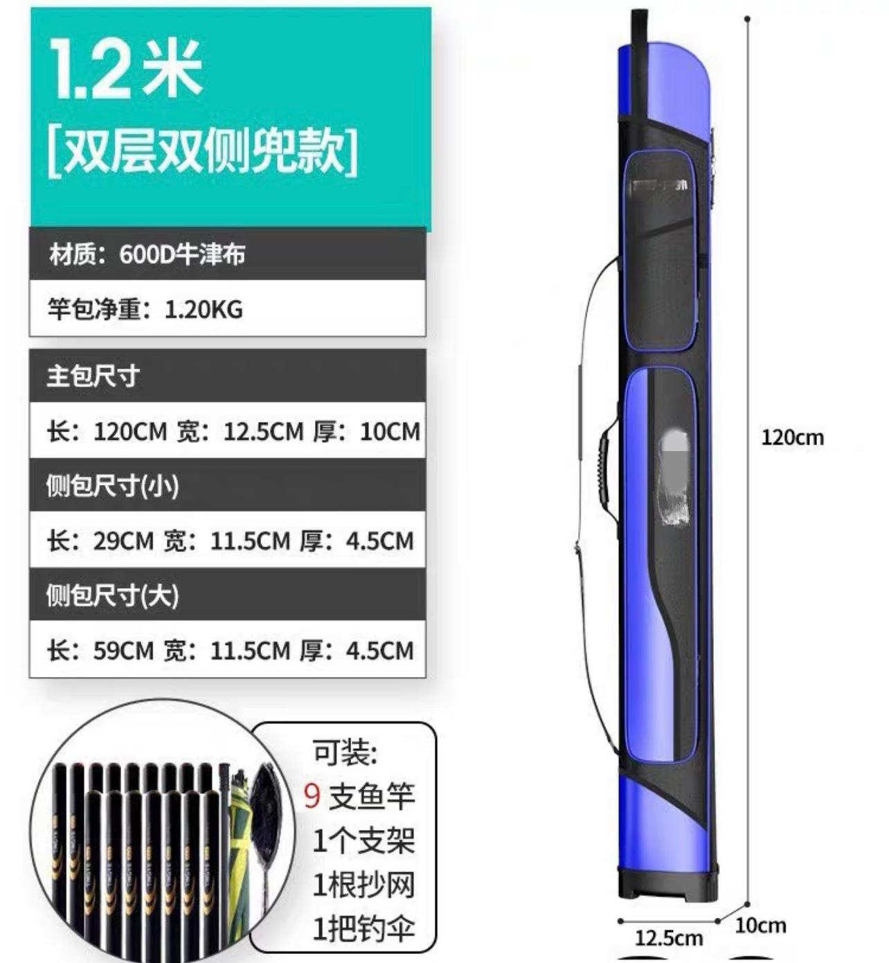 Bolsa rígida para caña de pescar, venta al por mayor de fábrica, 1,2-1,3 metros, bolsa para caña doble, bolsa multifuncional para aparejos de pesca, bolsa de pesca de gran capacidad