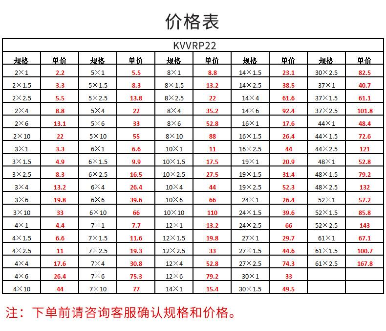 2 x 1, 2 x 1.5, 2 x 2.5, 2 x 4, 2 x 6, 2 x 10, 3 x 1, 3 x 1.5, 3 x 2.5, 3X4, 3 x 6, 3 x 10, 4 x 1, 4 x 1.5, 4 ...