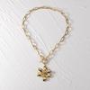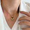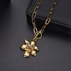 Collar de acero inoxidable ligero de lujo con cuentas y flores, estilo retro francés, con hebilla de oro de 14 quilates y colgante con personalidad exagerada.