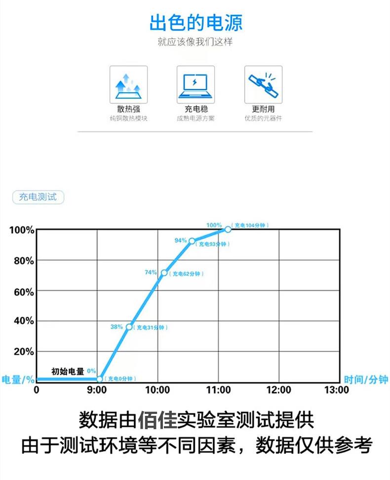 El cargador utiliza una solución de rectificación síncrona que ofrece buena disipación de calor, larga vida útil y una salida de corriente más estable. Es más estable y fácil de usar que la mayoría de las soluciones comunes del mercado.