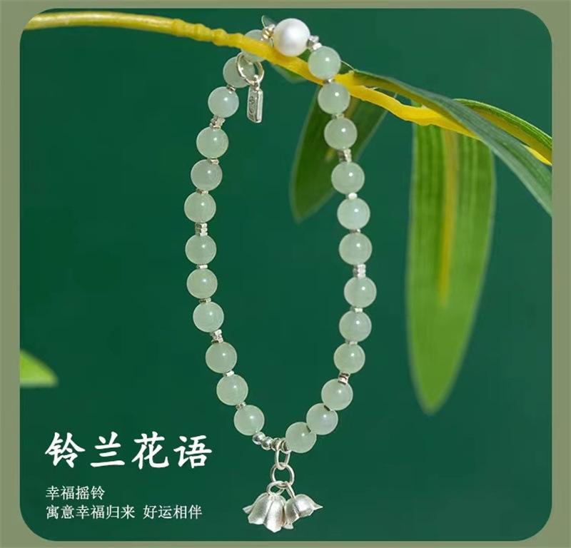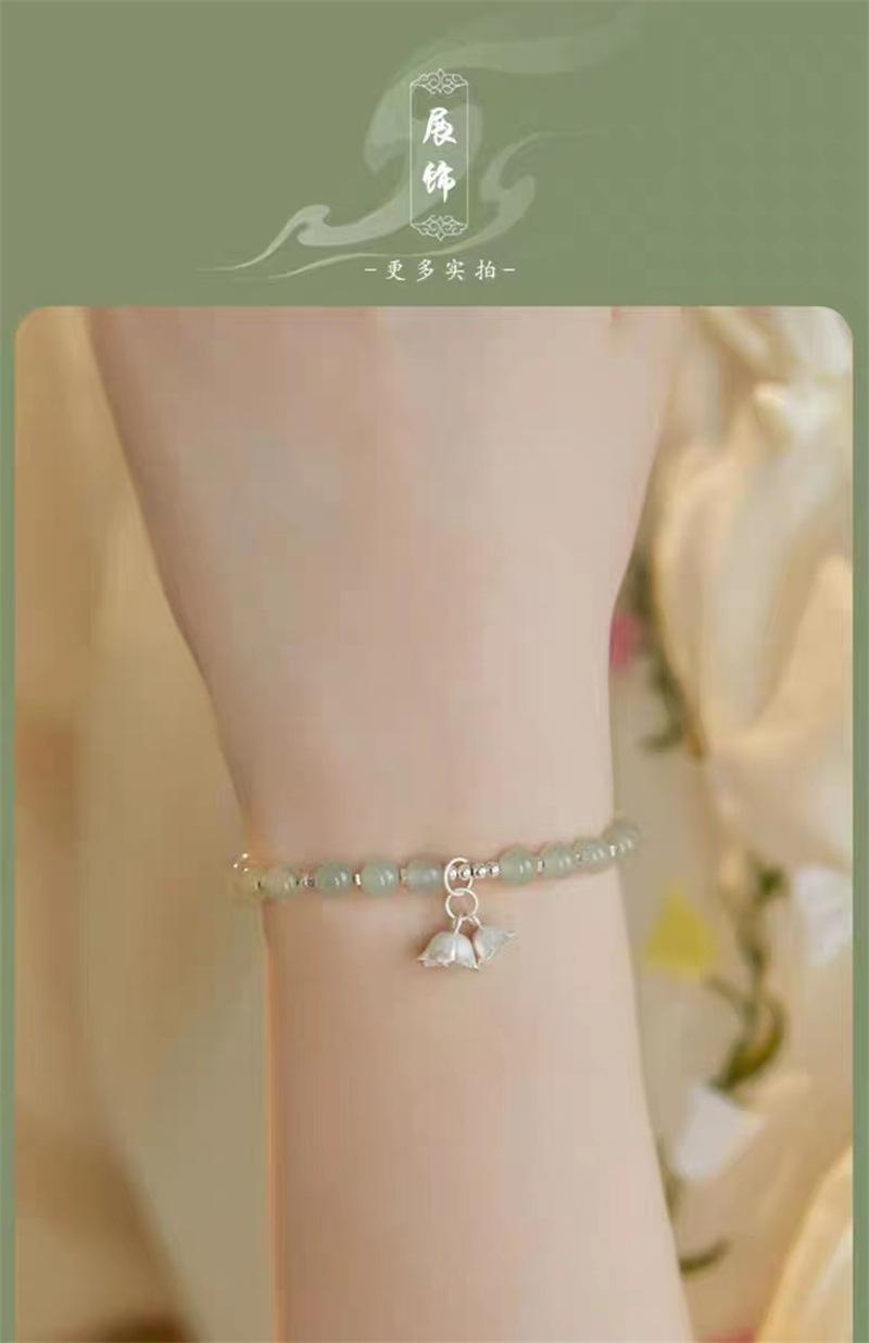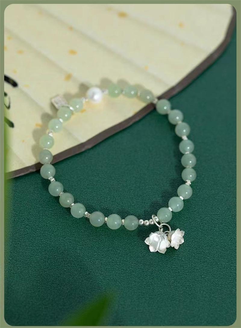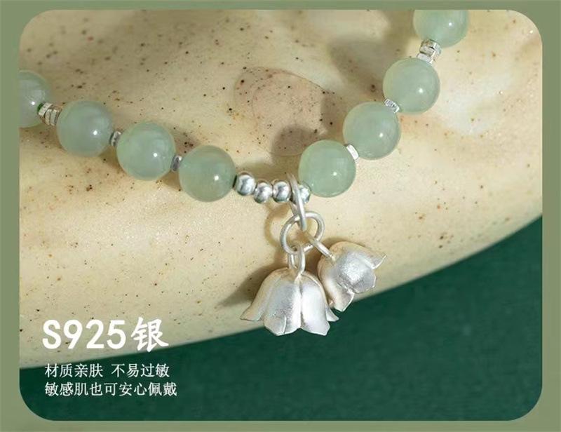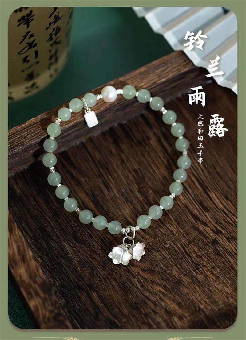 Compra Pulsera de jade hetiano natural con flor de plata esterlina y orquídea, pulsera de cuentas para mujer, regalo de novia de estilo chino antiguo al por mayor en Joom.pro