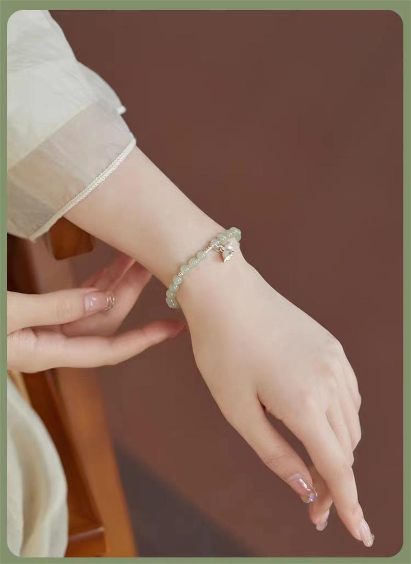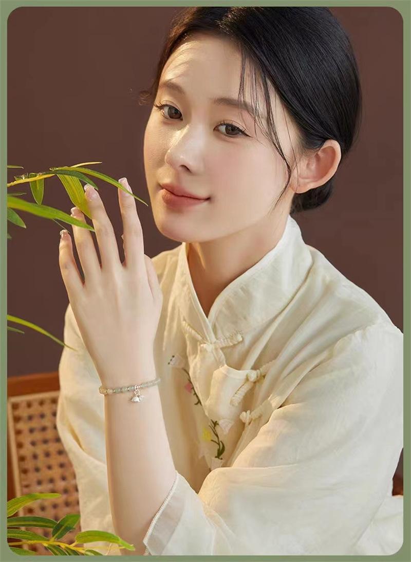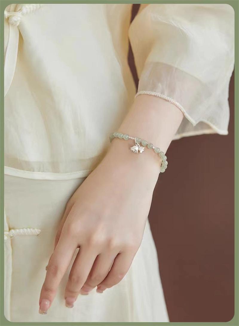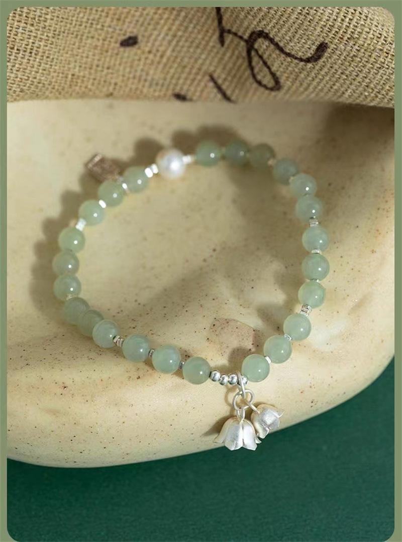 Compra Pulsera de jade hetiano natural con flor de plata esterlina y orquídea, pulsera de cuentas para mujer, regalo de novia de estilo chino antiguo al por mayor en Joom.pro