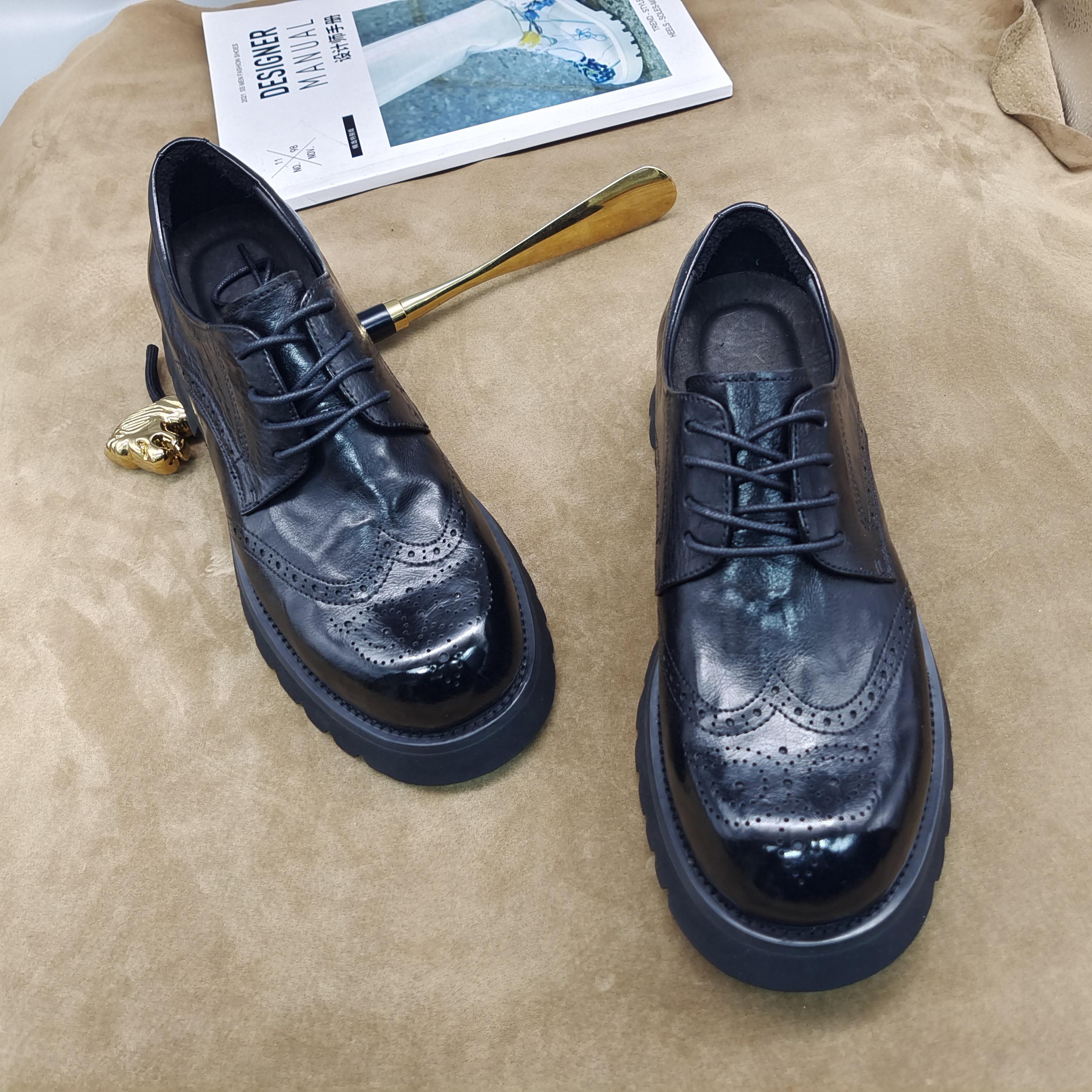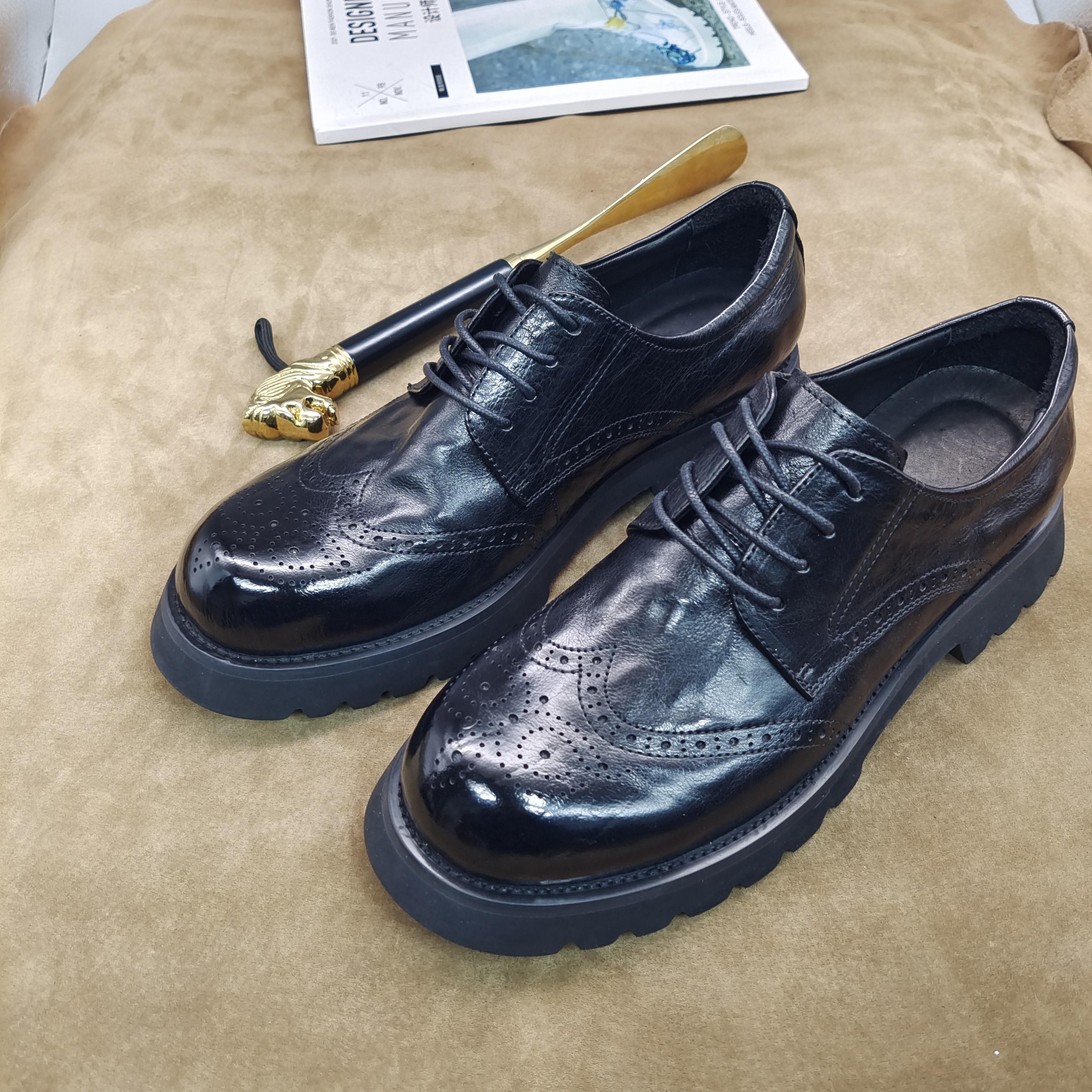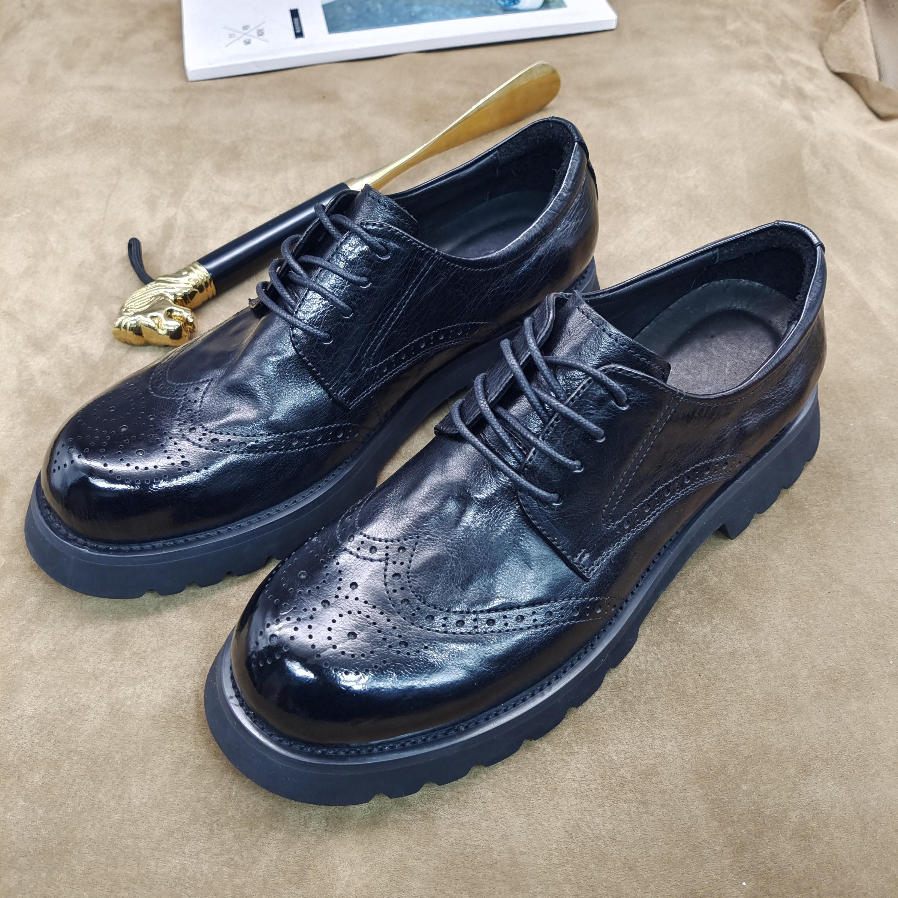 Zapatos Brogue Casuales de Negocios para Hombre, Zapatos Derby Formales Grandes de Cuero Hechos a Mano Tallados, Cuero Puro Versátil Hecho a Mano Cuero Genuino