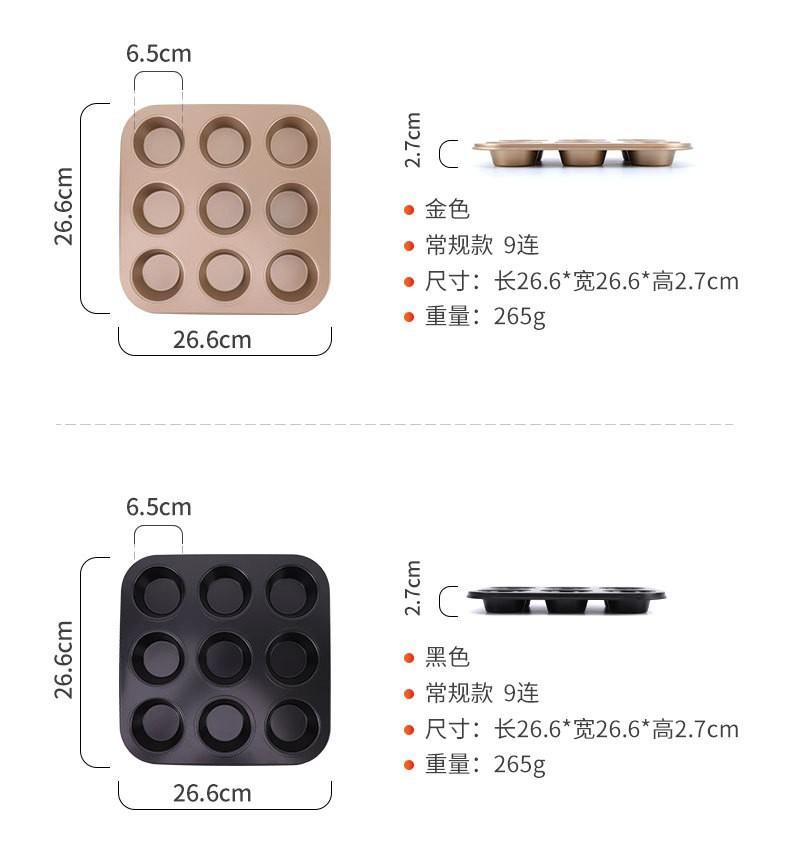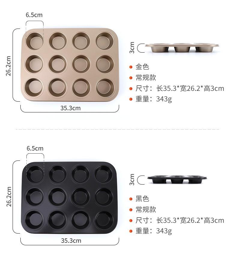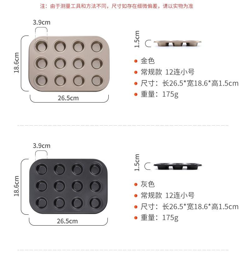 【Tamaño: (Molde para hornear regular dorado de 12 piezas) Longitud: 35.3cm Ancho: 26.2cm Altura: 3cm Diámetro de la copa: 6.5cm [Peso] 343g