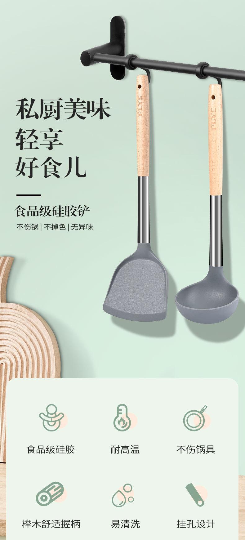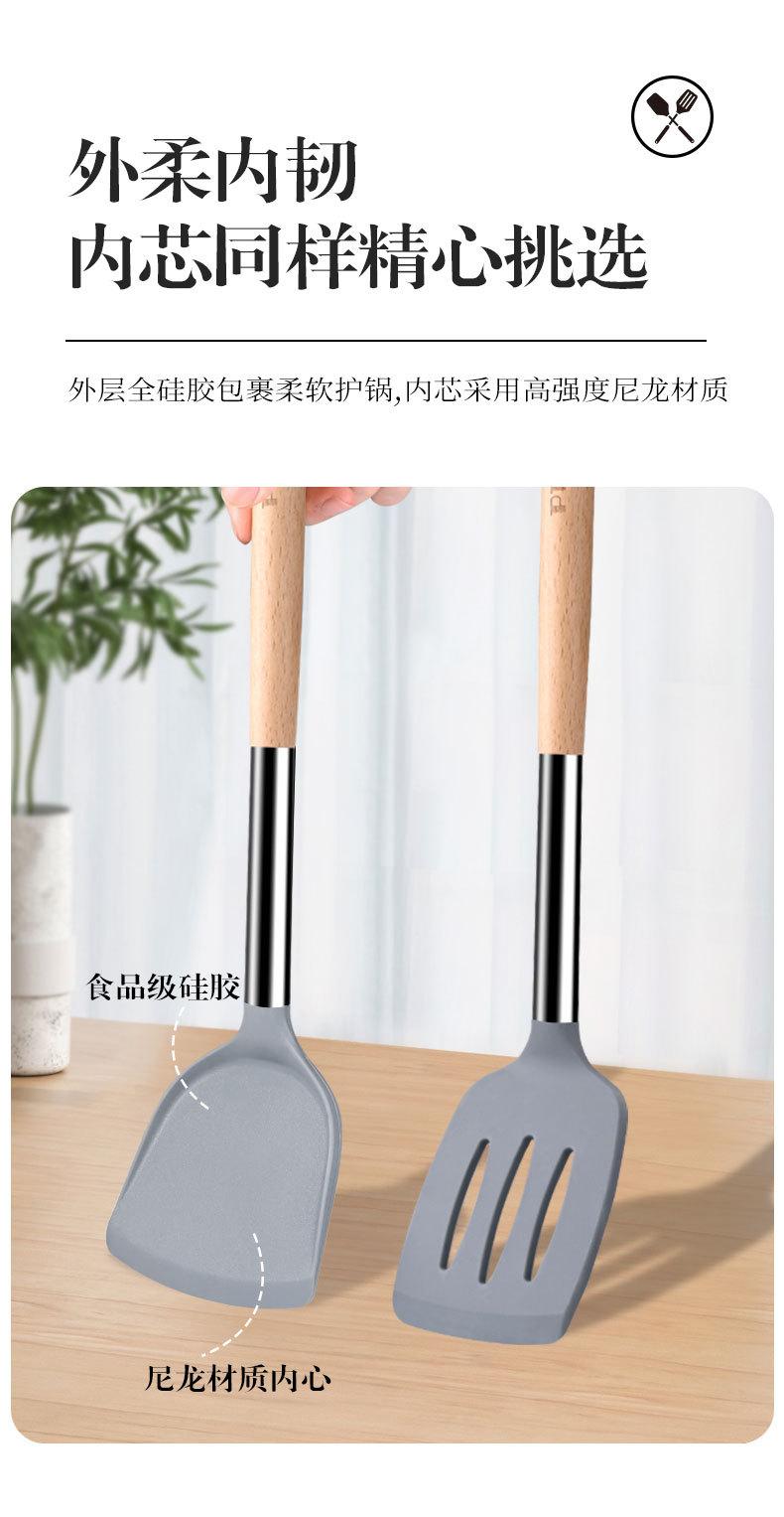 Gray silicone spatula "solid wood anti-hot pot does not fade], Grey silicone frying Shovel [solid wood anti-sc...