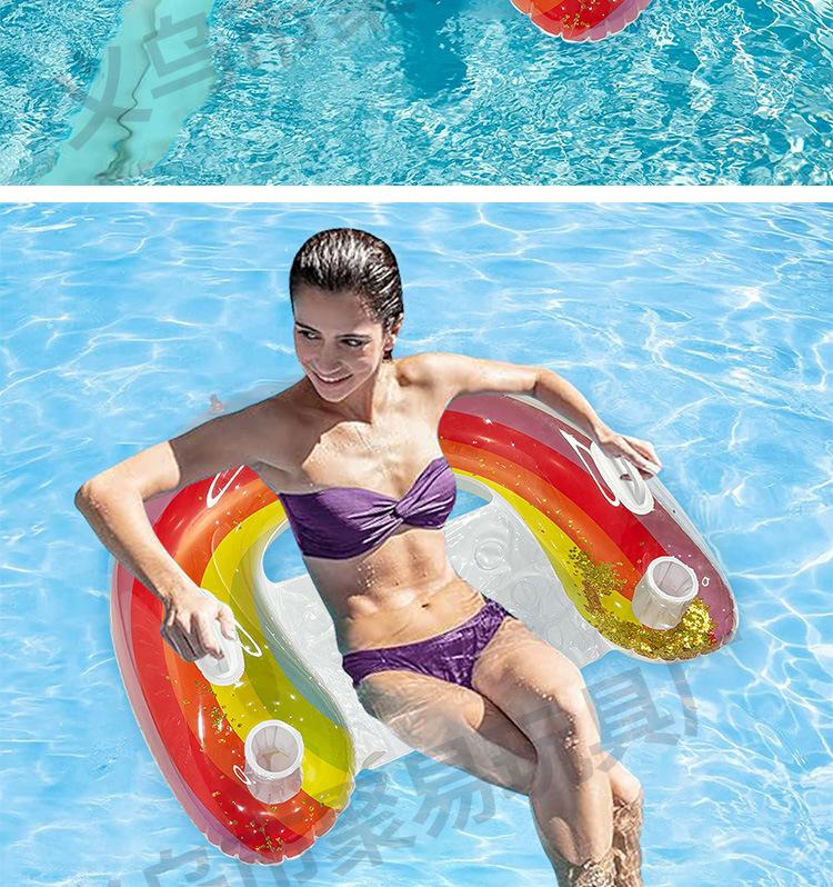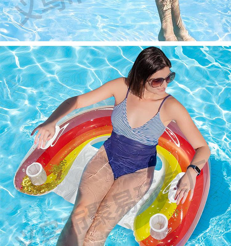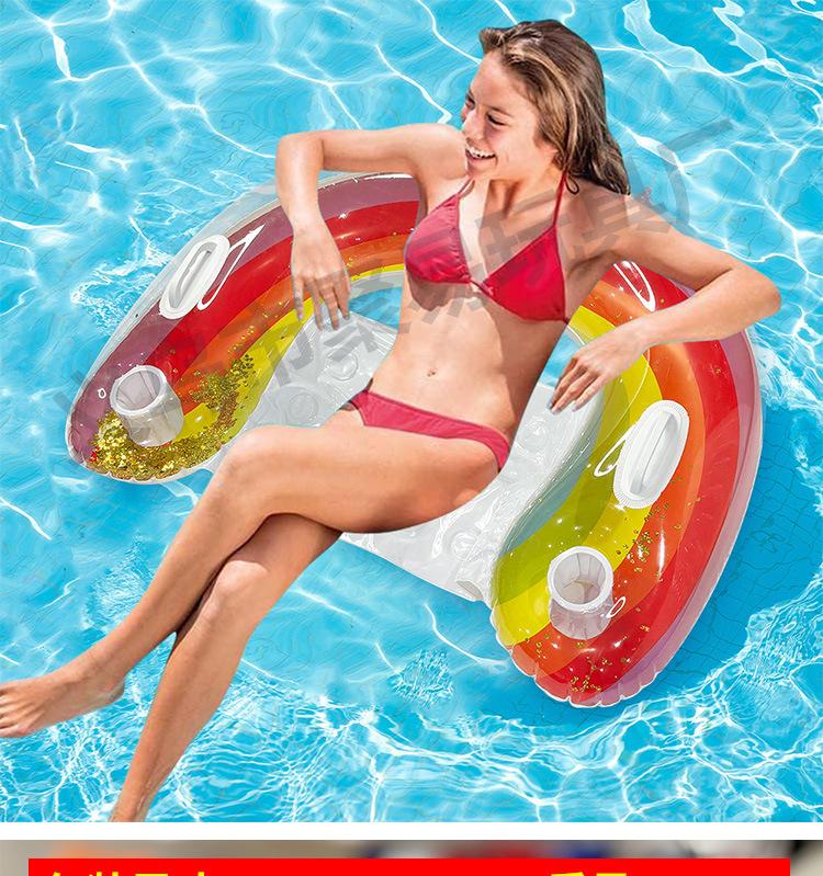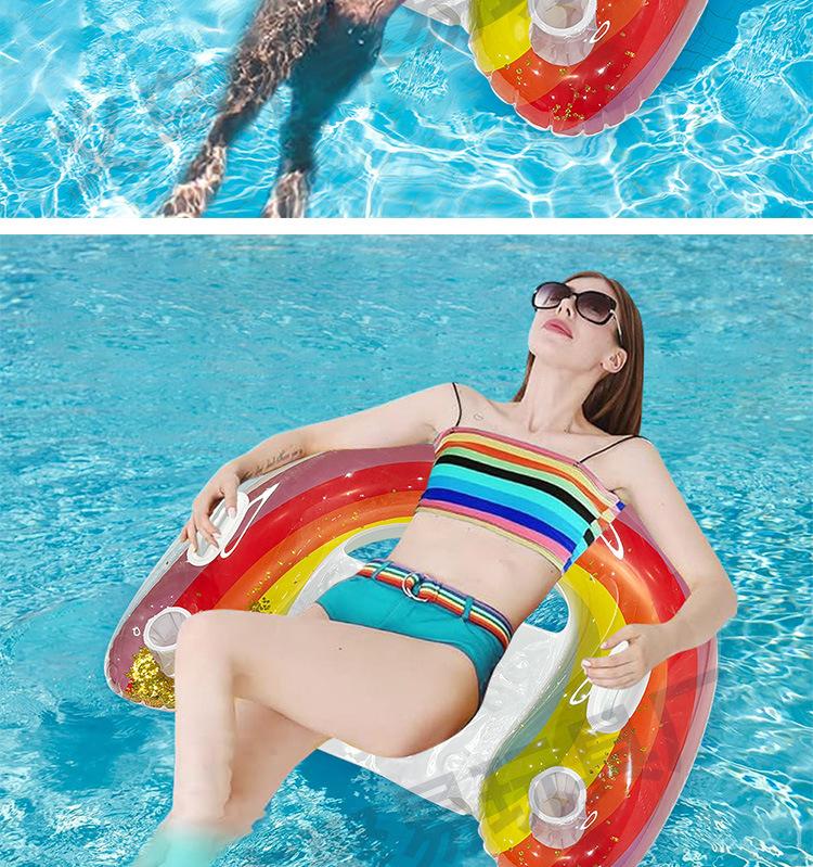 Nuevo anillo de natación inflable para adultos con flotador de agua, asiento de arcoíris con lentejuelas, flotador engrosado.