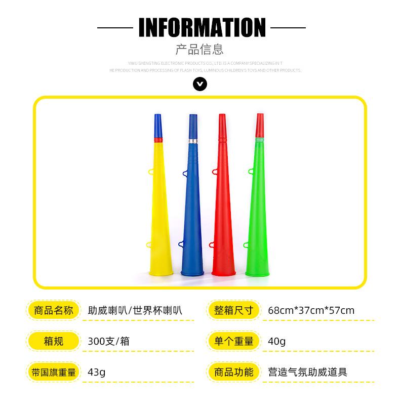 Con la bandera nacional, fanáticos del fútbol, cuerno, juegos de porristas, accesorios, wowoo razu, cuerno recto de plástico