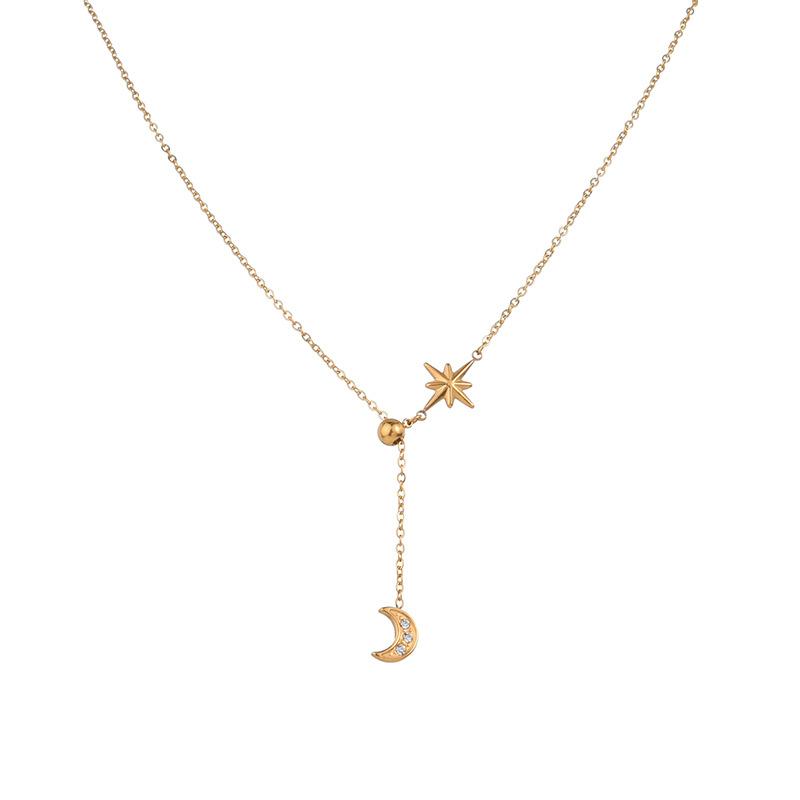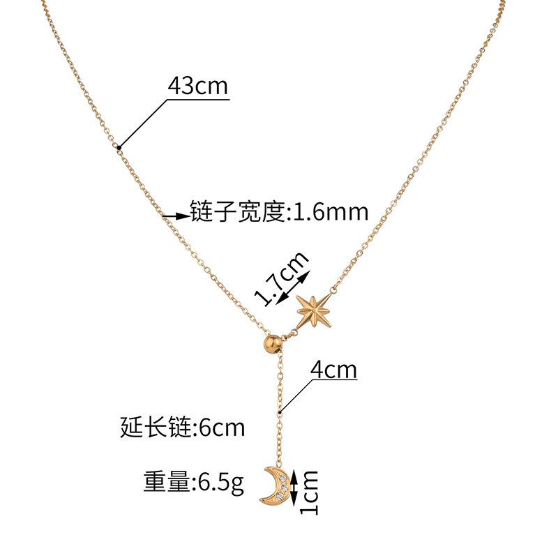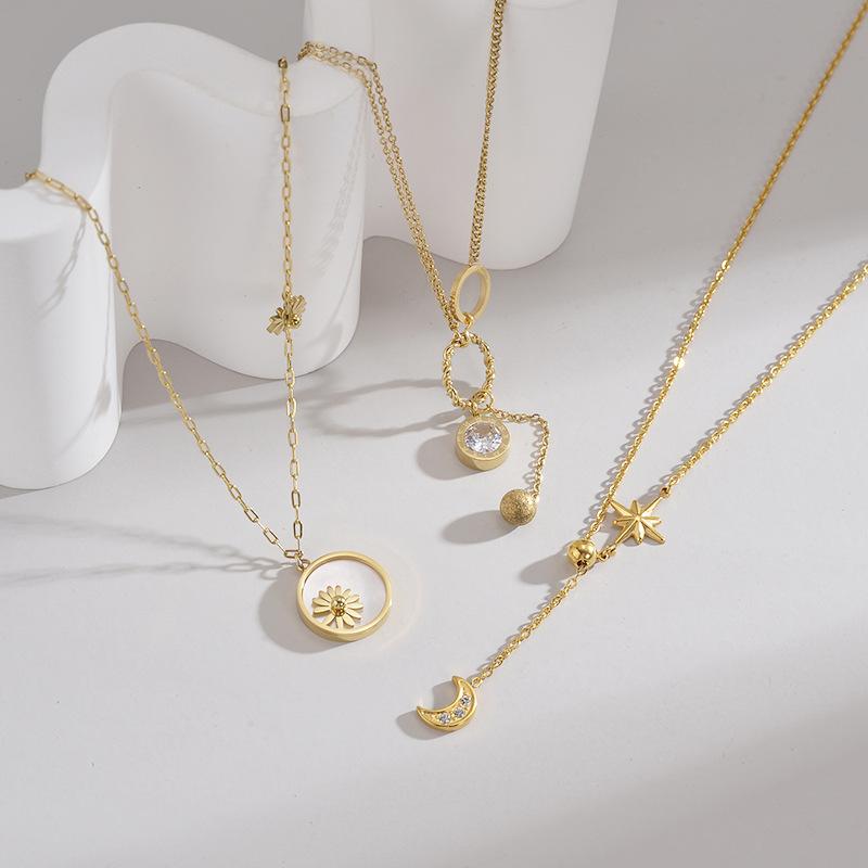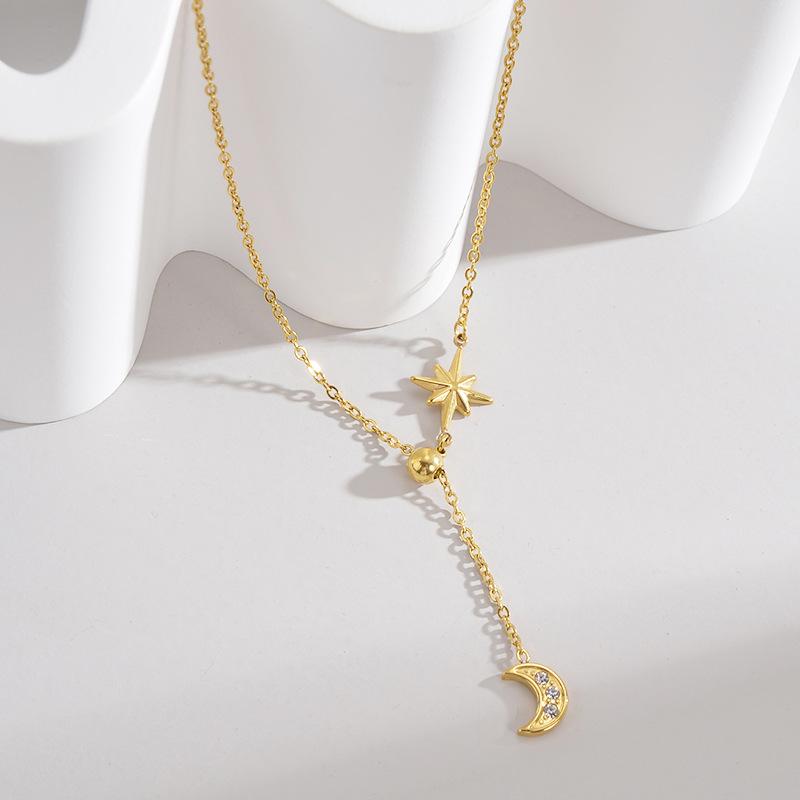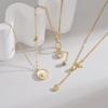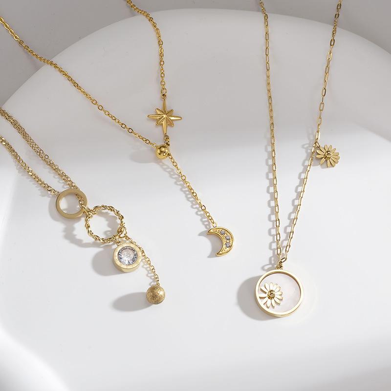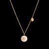 Collar con colgante de concha redonda de oro de 14 quilates con forma de estrella, diamante y luna, estilo retro europeo y americano, joyería de acero inoxidable para mujer