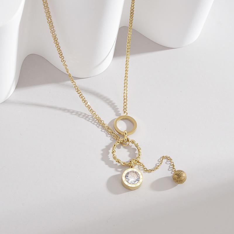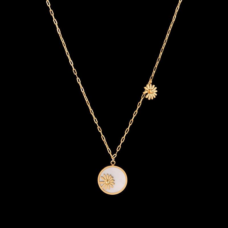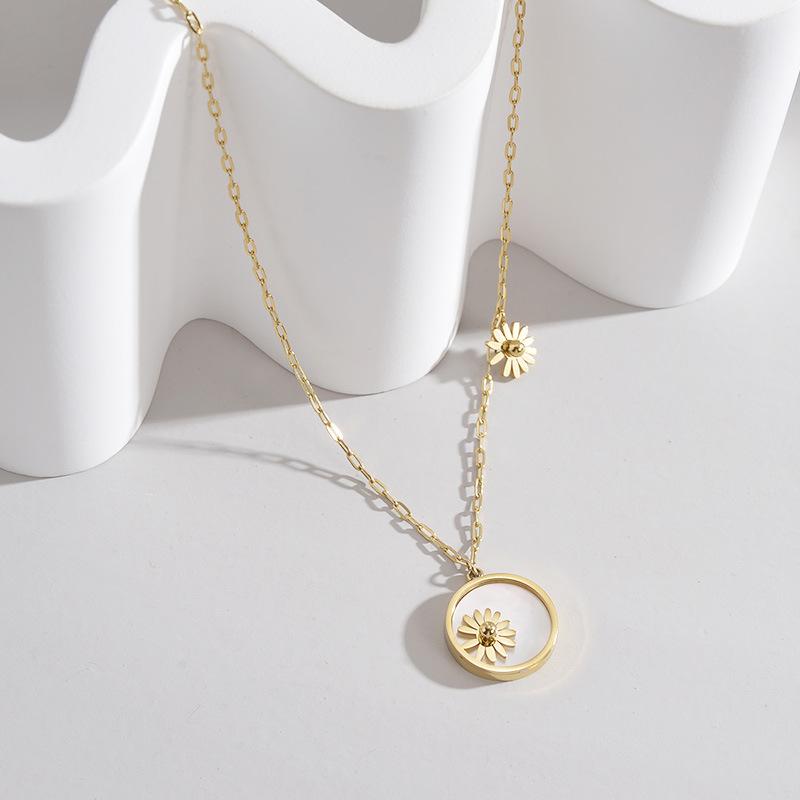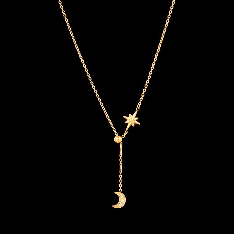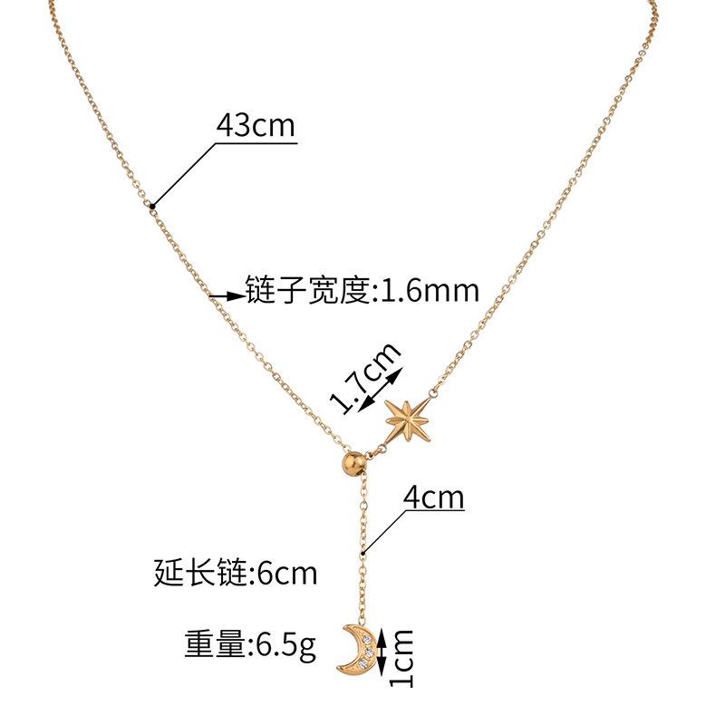 Collar con colgante de concha redonda de oro de 14 quilates con forma de estrella, diamante y luna, estilo retro europeo y americano, joyería de acero inoxidable para mujer