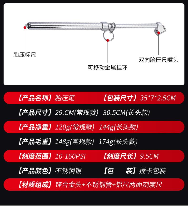 Medidor de presión de neumáticos de acero inoxidable para automóviles de fábrica, bolígrafo medidor de presión de alta precisión para automóviles, bolígrafo detector de presión de neumáticos de metal para automóviles