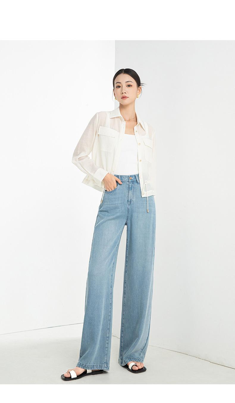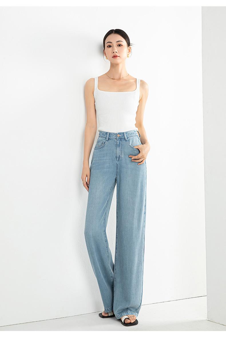 Pantalones vaqueros Xinge de pierna ancha de color claro para mujer, holgados, adelgazantes, de cintura alta, estilo americano, rectos, de verano 2024