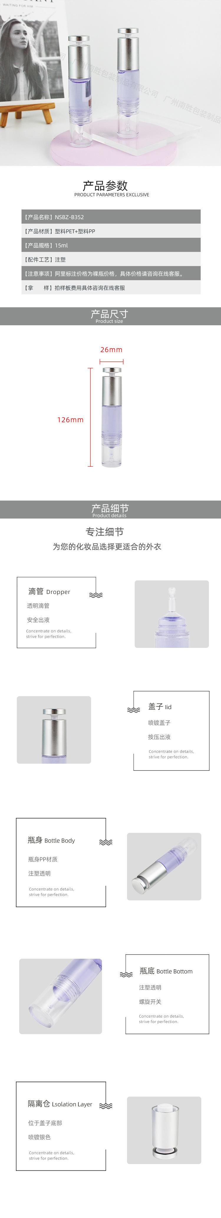 Se utiliza para envasar diversos productos para el cuidado de la piel, como líquidos, esencias, aceites esenciales, etc.