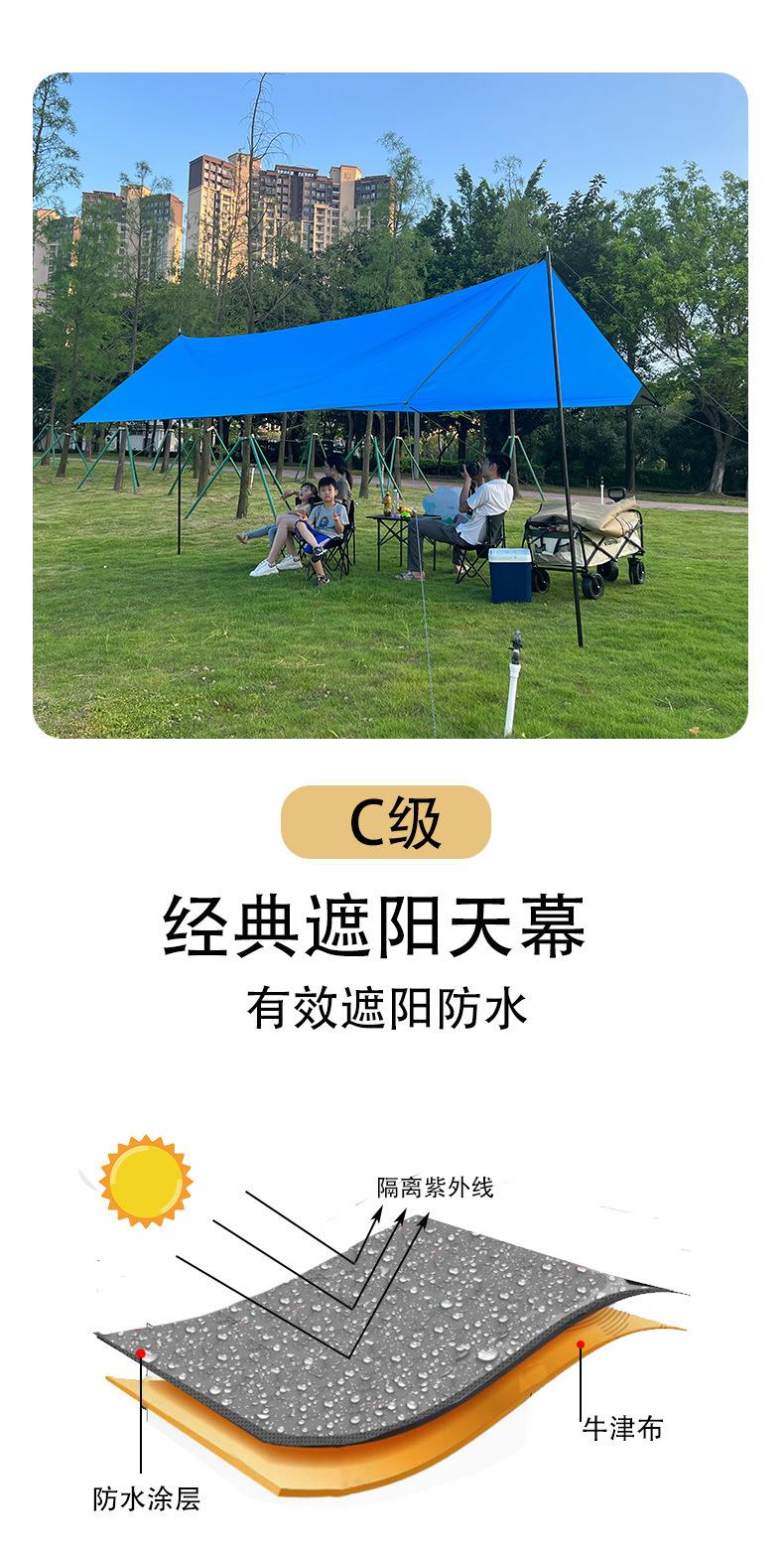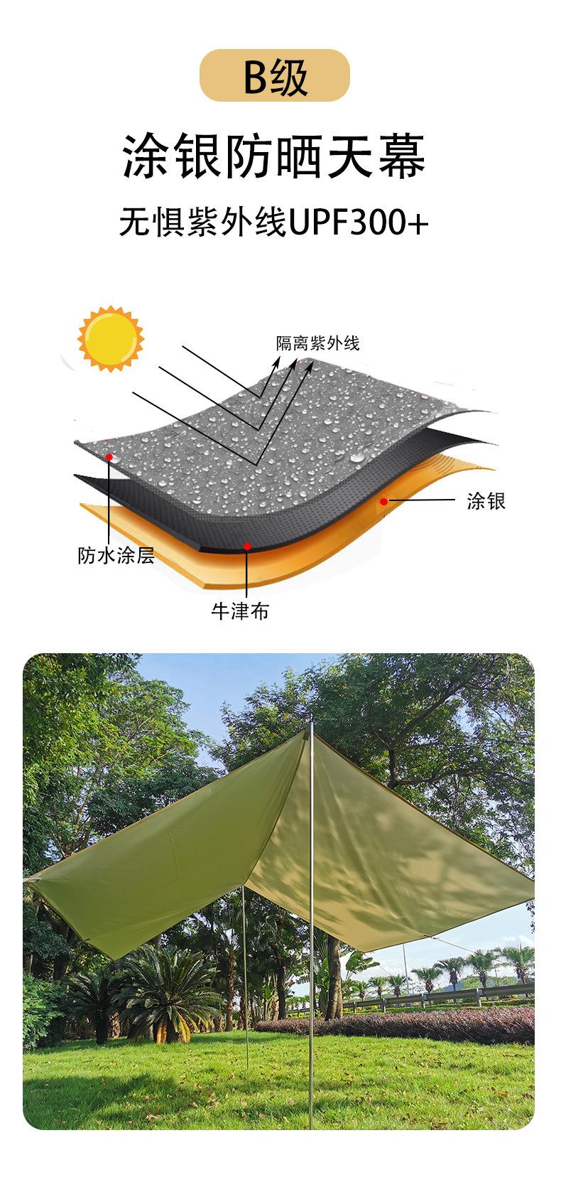Toldo para tienda de campaña al aire libre, práctico toldo de vinilo con revestimiento plateado, resistente al sol y a la lluvia, ideal para acampar al aire libre.
