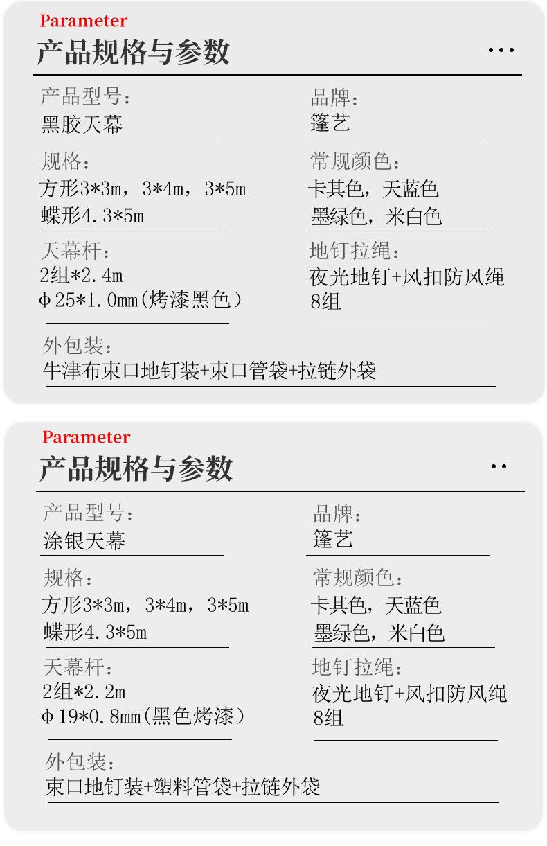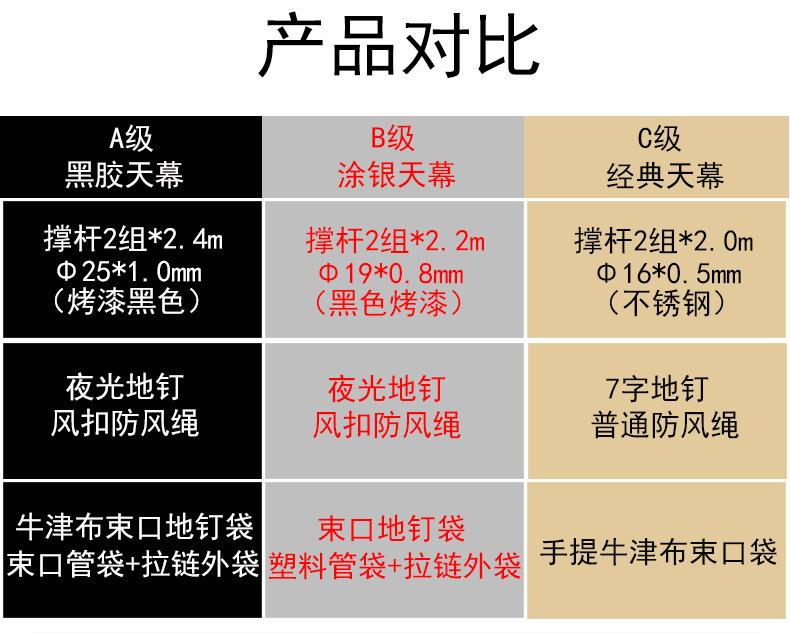Grade A vinyl canopy, Class B silver coated canopy, Class C ordinary canopy