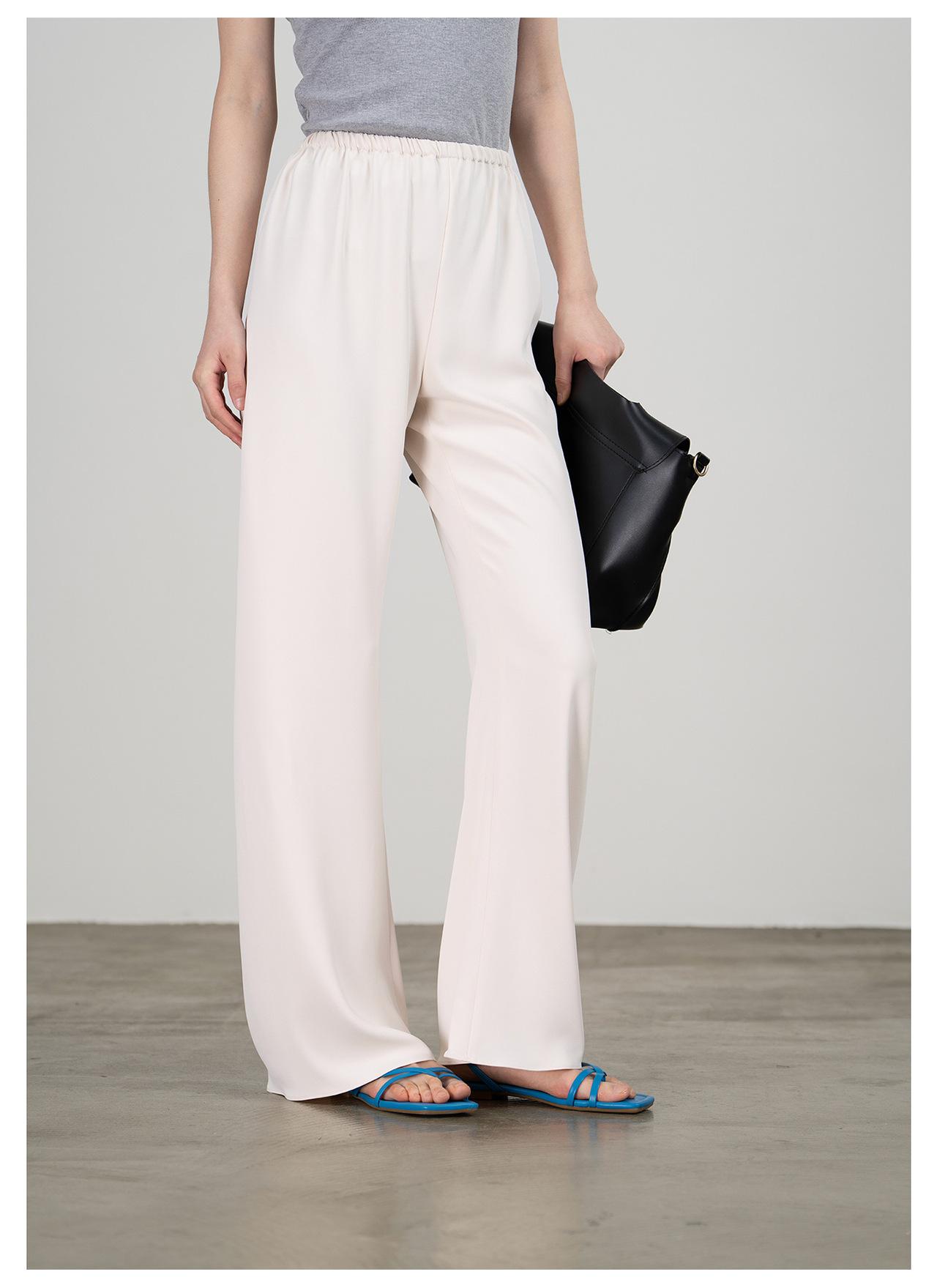 JIN boca ácido acético seda slip elástico ~ pantalones aire cintura alta blanco pantalones pierna ancha mujer 2024 nuevos pantalones rectos Z34008